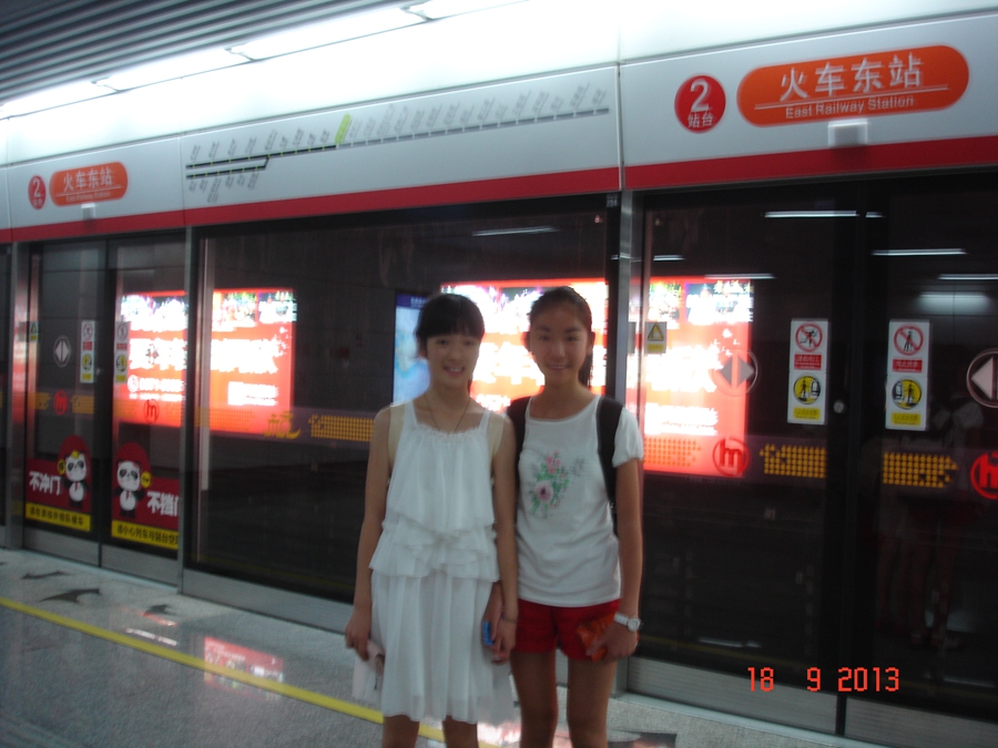 说着说着就到了东站,我们仨一起下车。这时候我想起今天的巧遇,想为她们拍张照片作个留念,于是拿出照相机请她俩在地铁上下车门旁拍了照片(见附),一起上自动扶梯后问了她俩的姓名得知:学大提琴的陈姿伊,学古筝的陈瑷瑶。随即挥手告别。