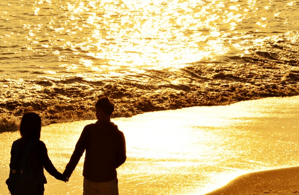 最后我会牵着你的手看夕阳落下,看你笑容倾尽天下。。(摄影:学生记者 张慧倩)