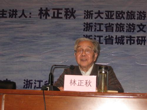 浙大亚欧旅游规划设计研究院院长、教授林正秋,13日当天,以其研究浙江地方文化五十多年的丰富学养,给师生作了题为《瓦子与百戏》报告。不仅讲述了宋朝瓦子与民间百戏的兴起,以及百戏如何影响宫廷艺术审美情趣等历史,还以自己作为中国旅游文化策划专家、浙江省旅游文化研究会会长的创新经历,鼓励学生们将理论转化为职业技能。