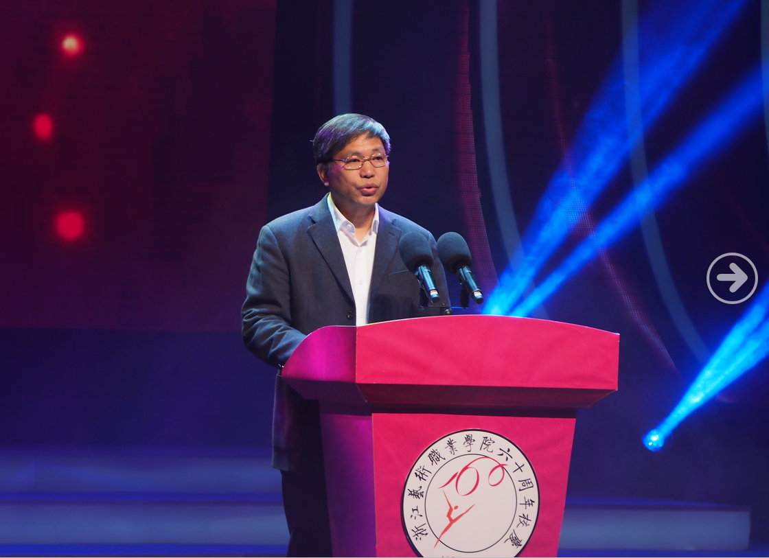 省文化厅党组书记、厅长金兴盛讲话。他代表省文化厅向全体师生员工、校友和退休老同志表示热烈祝贺,向长期以来为教育事业发展的各级领导、各界朋友致以崇高的敬意和衷心的感谢。他肯定了浙艺的办学历程,培养了诸多声名远扬的艺术人才,始终坚持党的文艺方针和正确的办学方向,坚持德艺双馨的人才标准和德艺并育的手段,遵循艺术高职教育规律,不断丰富办学内涵,打响艺术教育品牌,是全国艺术人才培养的基地和摇篮。