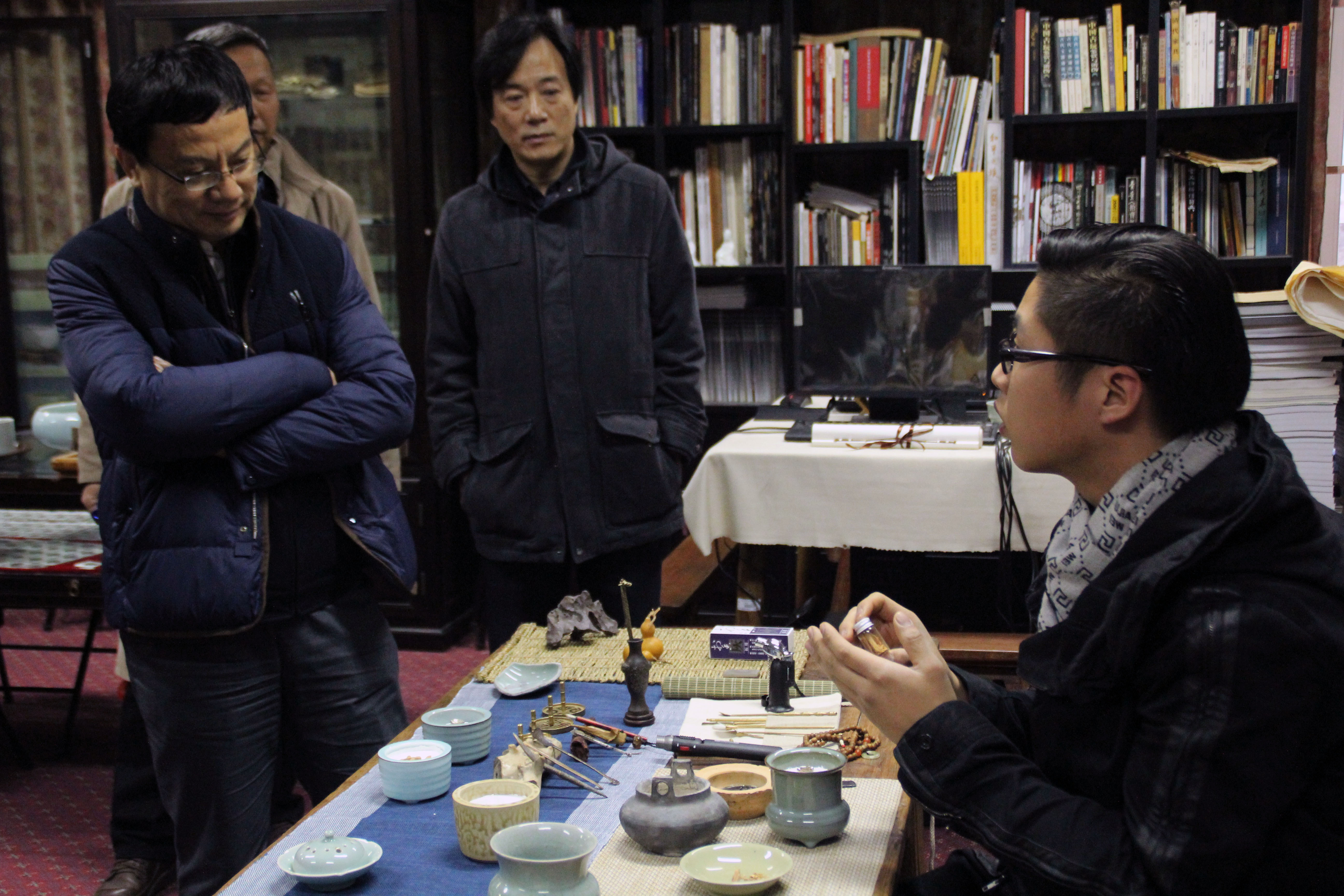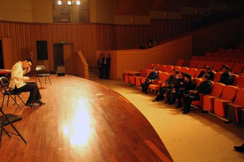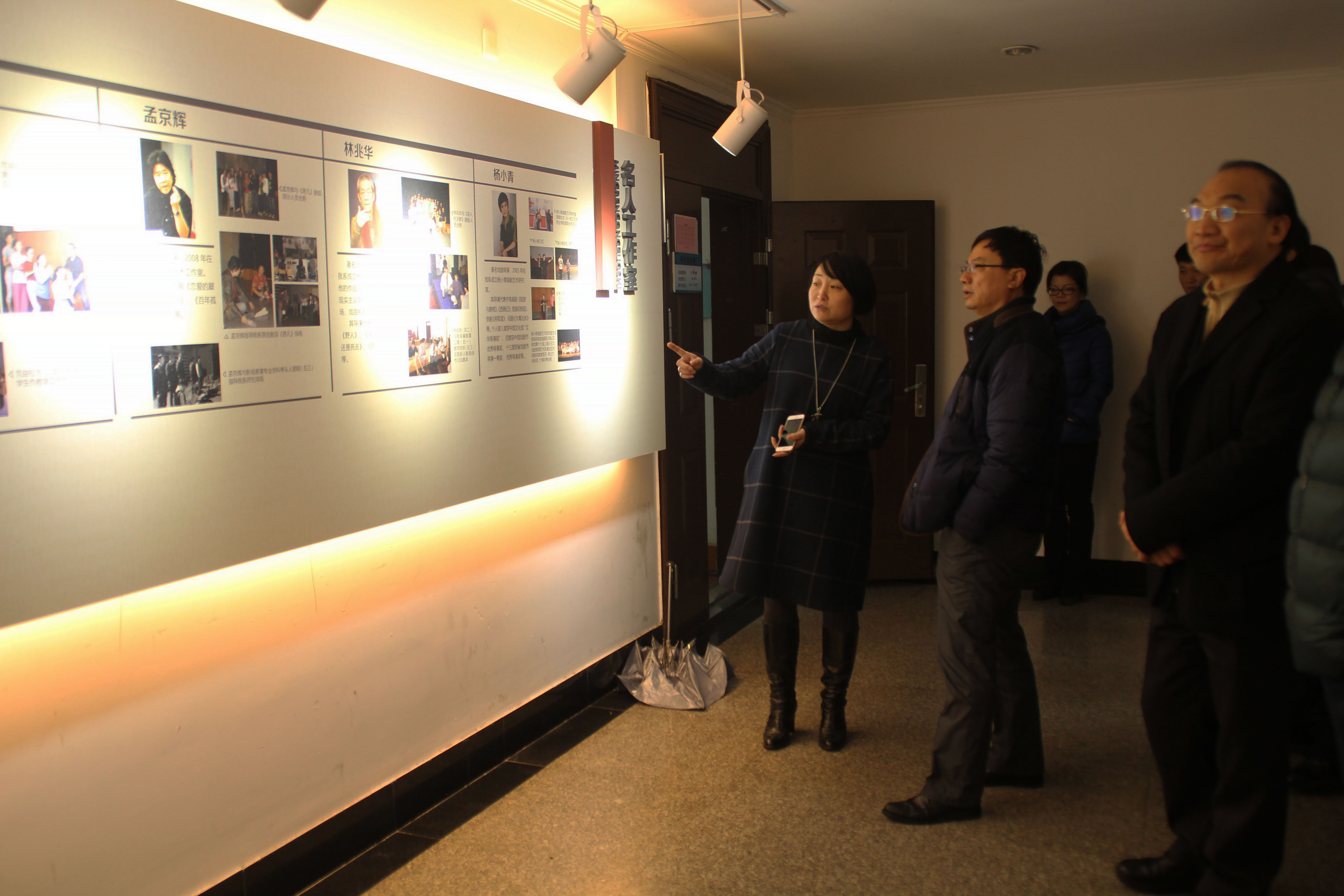 朱海闵向来宾介绍了学院目前的发展状况和教学规模,陪同前往戏剧系、音乐系、舞蹈系、美术系、影视技术系、文化管理系和附中参观。在参观过程中,戏剧系主任支涛向孙若风一行介绍了戏剧系发展历程、知名校友和系部教师。孙若风一行现场观摩了11级越剧班的毕业演出排练和13级昆剧班的折子戏。音乐系副主任高澄明介绍了音乐系近年来取得的成绩,孙若风一行观看了音乐系学生演奏的二胡曲目《赛马》,掌声不断。在舞蹈系主任张星陪同下,孙若风一行观摩了少儿音舞等专业的现场教学。美术系副主任杜晨鹰和影视技术系党总支副书记彭云波相继介绍了各系特色,孙若风一行参观了四号楼一楼大厅13级服装班学生的毕业作品展、灯光实训室、虚拟舞台演播室、电影放映设备陈列室。文化管理系副主任陈子达介绍了文化管理系的特色专业,陪同孙若风一行参观文物鉴定与修复实训室,由本专业学生为孙若风一行讲解文物修复技巧等专业内容。在陶艺实验室,孙若风对陶瓷的制作产生了浓厚的兴趣,对我院学生的陶艺制作水平表示赞赏。
