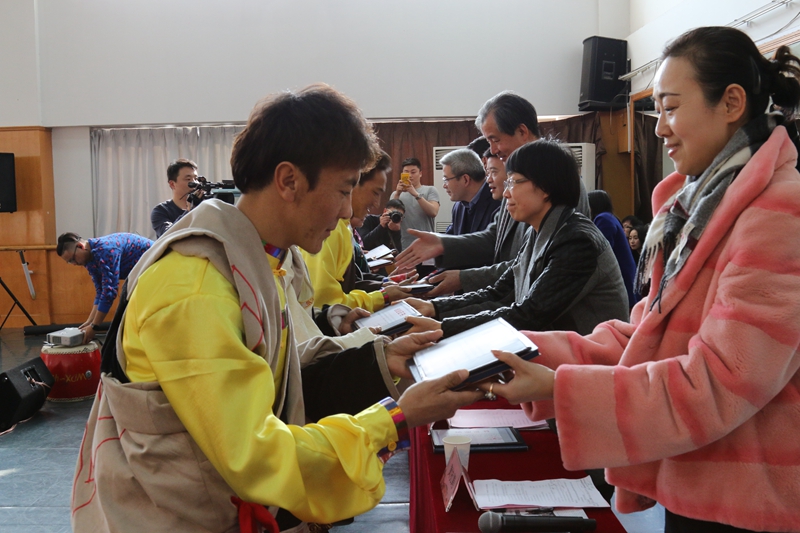 朱海闵在讲话中回顾了西藏班近三个月来的学习历程,感谢各级领导的关心指导和对学院的信任支持。她表示,此次那曲地区艺术人才培训班是浙江省那曲援助计划的重要班次,培训班的举办是深入贯彻落实中央关于文化大发展大繁荣的有关决定、加强那曲地区文化队伍建设的有力举措。学院党委高度重视,有针对性地落实教学计划,统筹各个职能部门安排好学员们的生活食宿,确保培训任务顺利完成。参训学员态度端正,培训效果非常好。学院有针对性的教学,使学习氛围非常浓郁,让大家看到了西藏人吃苦耐劳、敢于奉献的精神。浙艺师生和西藏班学员也建立起了深厚的友谊。