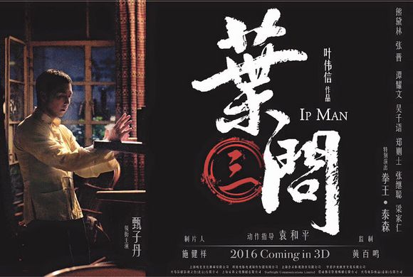 叶问系列电影从2008年到现在已经上映了三部,立志成为李小龙第四代传人的我早已拭目以待《叶问3》。这部电影的动作设计配上3D效果真让我大饱眼福,袁和平的武打设计自然在水准之上。从我一个武术爱好者的角度来看,虽然《叶问3》里的打戏相比前两部的戏份相对来说少了刚猛的劲头,但影片总的来说也很够味了。在咏春内战里,其他几个招牌也都陆续亮相,六点半棍、八斩刀、标指、寸拳。如果说是李小龙将咏春发扬光大,那甄子丹的叶问三部曲,则真正让武术圈外都知道了这个南方小拳种。泰森也是此部电影的一大卖点,与泰森的那场打戏把咏春拳以柔克刚的特质表现得淋漓尽致。