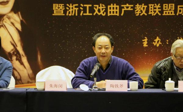 浙江越剧团团长陶铁斧介绍了越剧与中国戏曲的发展历程,他说:“越剧的辉煌离不开老一辈艺术家们苦心孤诣之奋斗,我们今天聚集在这里,就是要传承前辈们艰苦奋斗、敢于创新的精神。”这也是戏曲产教联盟成立的初衷,只有传承才有发展,联盟的成立就是将传承之理念付诸实践。