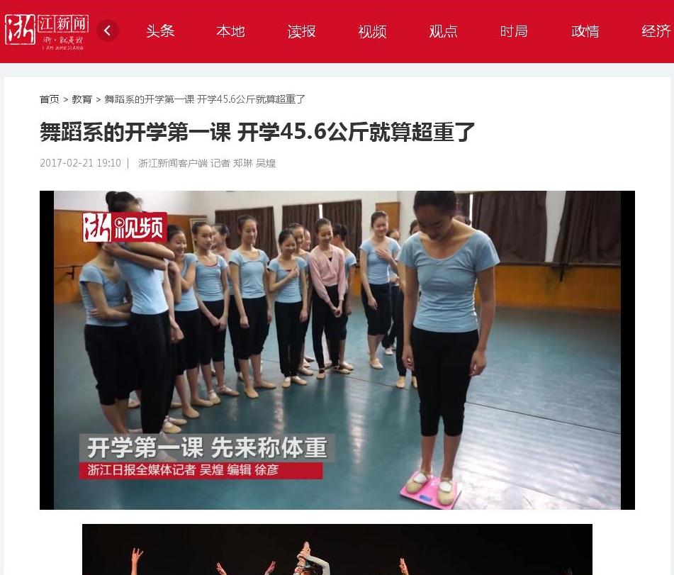 浙江新闻讯:舞蹈系的开学第一课 开学45.6公斤就算超重了