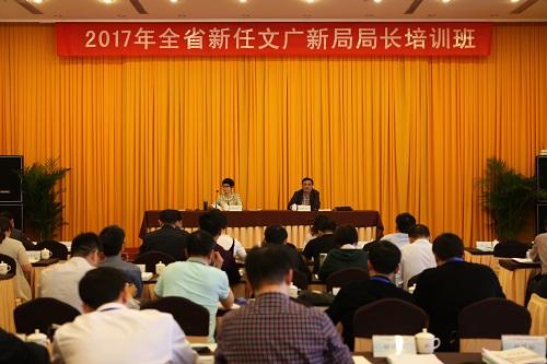 在开班仪式上,陈瑶代表厅党组对本次培训班的顺利举行表示衷心祝贺,对大家的参训表示热烈欢迎。她说,党的十八大以来,习近平总书记发表了系列重要讲话,提出了许多治国理政的新理念、新思想、新战略。其中,习总书记对文化建设发表了一系列重要讲话,全面系统地阐述了新形势下文化建设具有方向性、根本性的重大问题,进一步明确了新时期文化建设的历史地位、历史使命、根本性质和根本立场,为当前和今后一段时期文化建设指明了前进方向,提供了基本遵循。陈瑶指出,“十三五”时期是我省文化改革发展的关键时期。《浙江省文化发展“十三五”规划》明确提出“十三五”总的目标是努力建成文化强省,文化发展主要指标位居全国前列,成为全国具有重要影响力的文化发展示范区域。围绕这个总目标,我们要着力把握好六个“发展”:一是要立足浙江历史方位,注重率先发展。二是要立足经济社会发展,注重融合发展。三是要立足人民群众需求,注重共享发展。四是要立足激发文化活力,注重创新发展。五是要立足全省共同进步,注重协调发展。六是要立足全面从严治党,注重廉洁发展。对本次培训,陈瑶希望大家能理解厅党组下决心举办本次培训班的良苦用心,明确培训的重要性和紧迫性,同时要求大家要静下心来学习、确保成效。