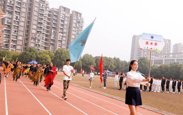 在充满激情的运动员进行曲中,由各系师生组成的代表团迈着整齐一致的步伐迈入田径场,诠释着“全民全运”的魅力。各系的入场表演精彩纷呈,各有特色,美术系的汉服秀彰显中华传统服饰的特色文化,文化管理系的打伞舞将江南女子的温婉气质展现得淋漓尽致,戏剧系、舞蹈系自信展示优雅舞姿,影视技术系以啦啦操舞为赛场增添活力,音乐系同学手上的气球诉说着放飞理想的青春朝气。江南忆,最忆是浙艺,天公作美碧空现,骄儿洒汗壮志酬。