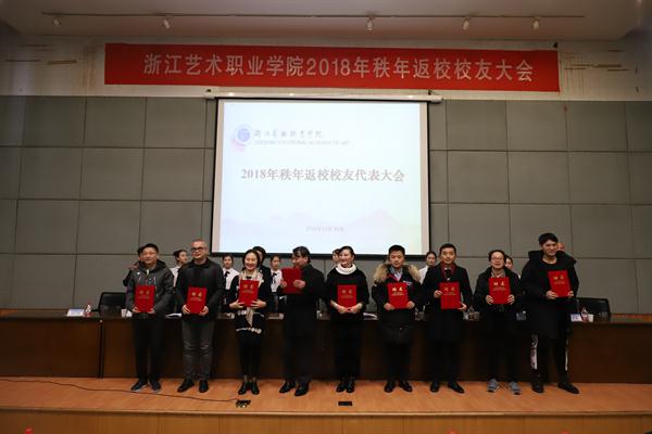常山县人民政府副县长郑金仙女士,作为学校合作单位代表在大会上致贺辞。校友会副会长、东海电影集团有限公司副总经理俞孟忠,温州校友分会秘书长计卫东作大会发言,他们回忆当年在浙艺度过的美好校园生活,畅谈当下心系母校的情谊,并分享了校友会温州分会的筹建经验。大会宣布了关于聘请18位优秀校友作为学校的创业导师的文件,并颁发了聘书。