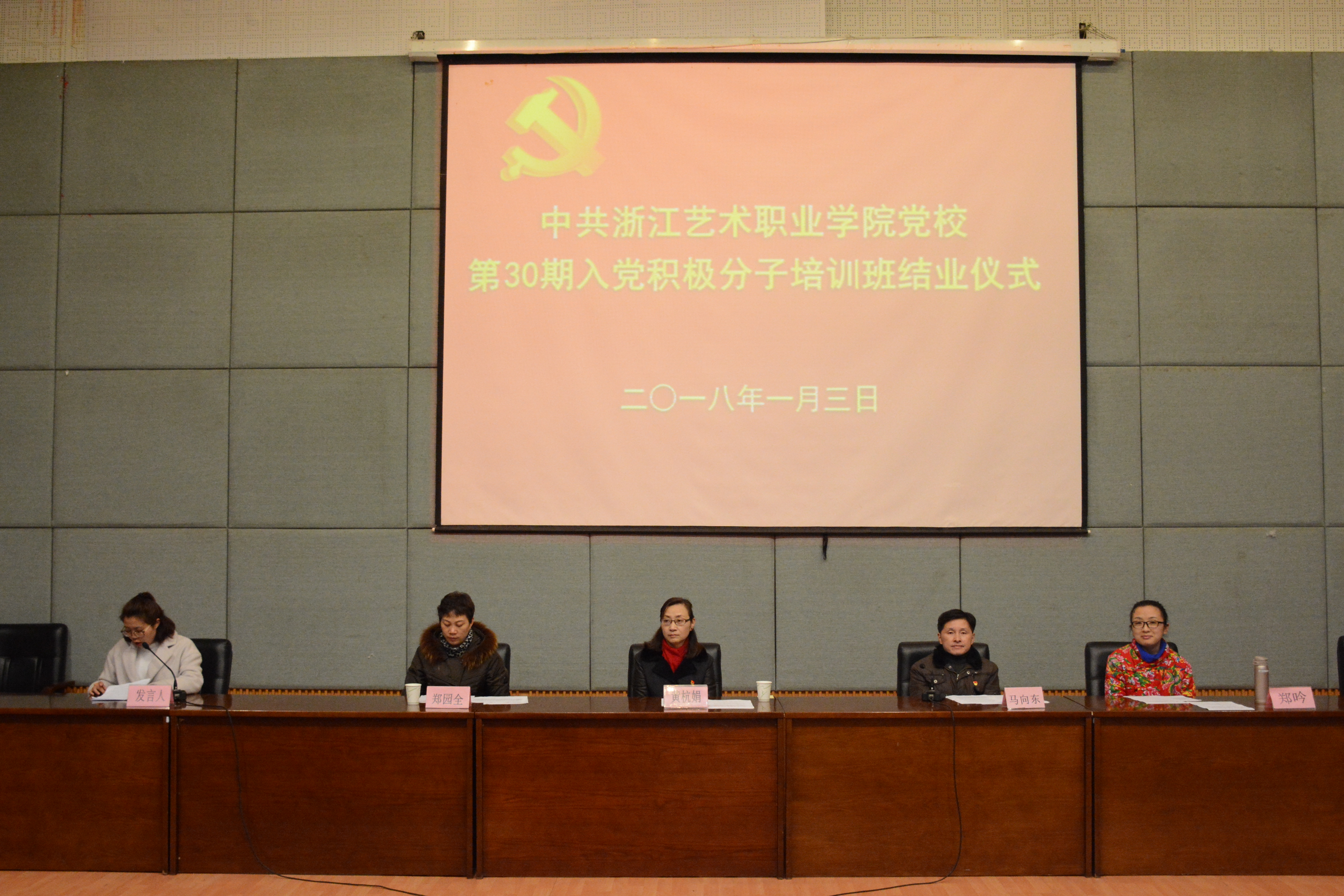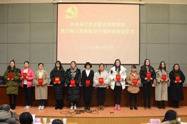 经过考核,第30期入党积极分子培训班评选出14名优秀学员,分别是戏剧系徐思寒、赵金燕,音乐系黄逸宁、龙丽萍,舞蹈系王文如、陈苗苗,美术系杨雪情、廖佩瑶、吴雅婷,影视技术系施欣南、沈佳、杨艺倩,文化管理系刘有成、莫李波;评选出12名优秀论文获得者,分别是戏剧系寿琳砚、尹心慧,音乐系黄爽、周汉楚,舞蹈系陈昱彤、任苏婕,美术系廖佩瑶 、周慧敏,影视技术系李涛、张雅迪,文化管理系刘心怡、洪依琪;美术系、影视技术被评为优秀班级,美术系钱玉玲和影视技术系沈霄媛被评为优秀班主任。