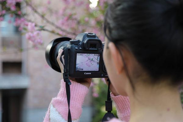 艺池边上,一把长椅记录着花开花落。春天的美丽或许来得匆忙,走得无声。总有人想把这一切记录下来,捕捉美好,用自己的相机去捕捉浙艺的春天。