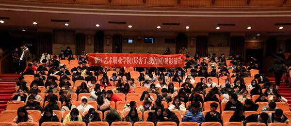 观影过程中,不乏有眼泛泪光的学生,这是激动而又自豪的泪水,我们为祖国的强盛而心潮澎湃。