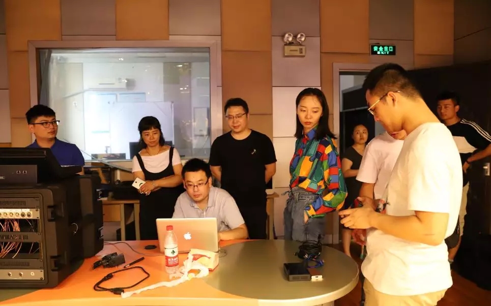 19日早上8点多,所有工作人员都来到直播现场进行最后测试。除了老师以外,影视技术系部分专业学生也承担了此次任务,摄影摄像专业与编导专业进行摄像,多媒体专业负责操作导播台和线路管理。