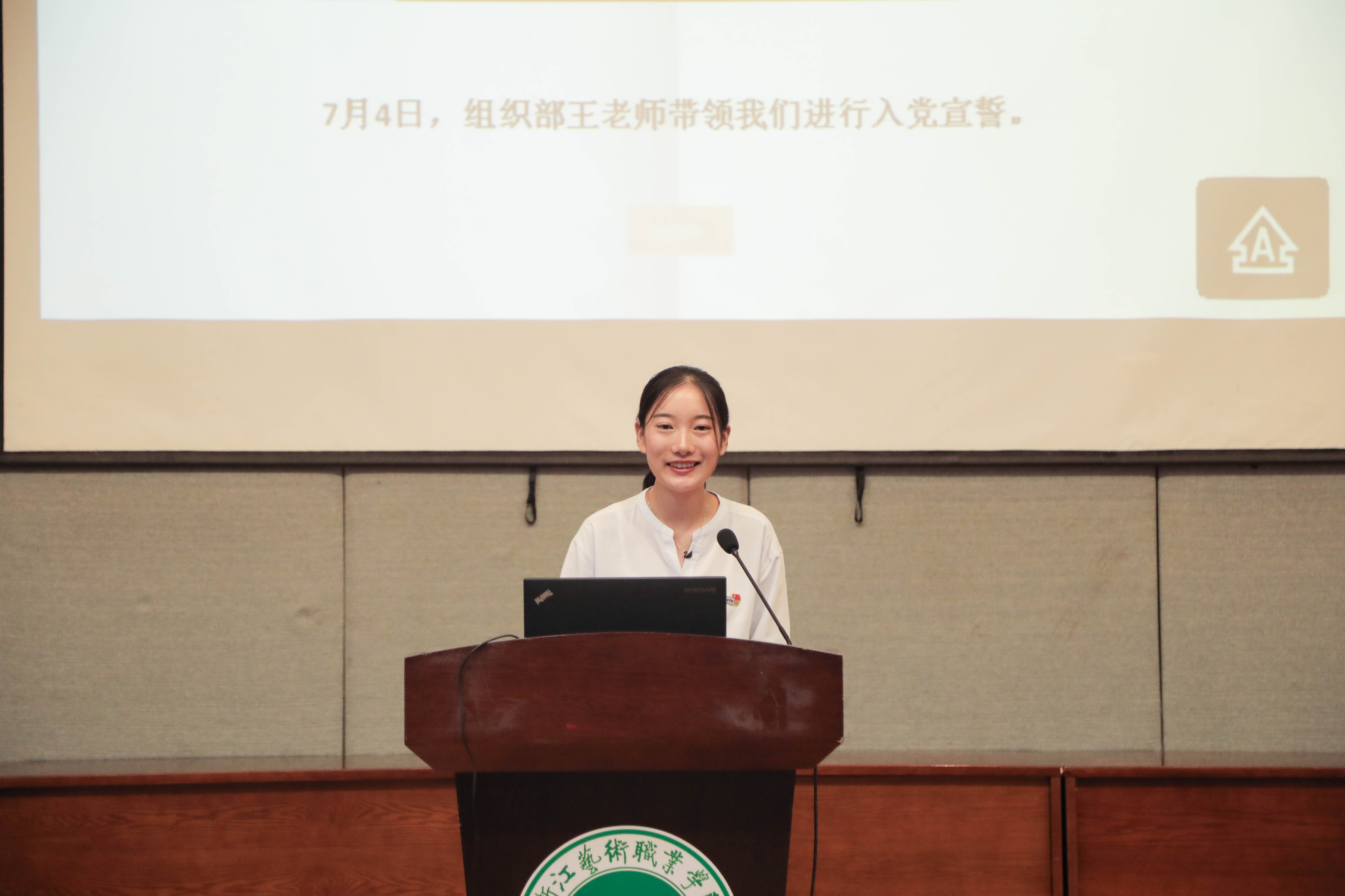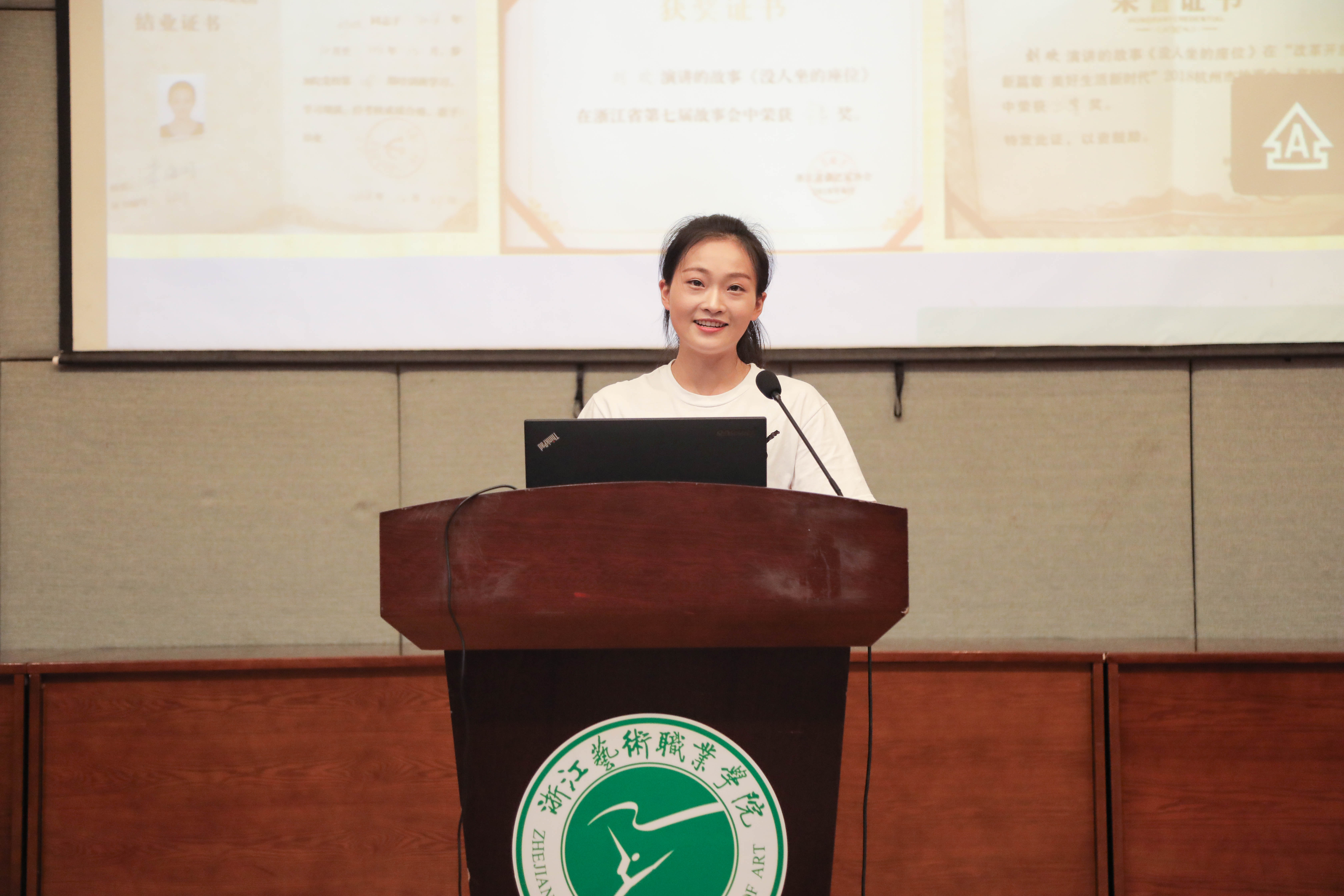 由各系推荐的5名候选人文化管理系陈莉、美术系潘紫薇、戏剧系刘欢、音乐系梅舒宁、影视技术系谢静,根据抽签顺序依次上台进行演讲展示。他们结合专业学习、社会实践、工作和生活经历,从理想信念、专业素养、道德风尚、人文情怀、社会工作与志愿服务等不同角度讲述自己在浙艺学习的收获和心得,精彩的演讲、丰富的经历和成功的收获,感染了现场师生观众,掌声不时响起 。