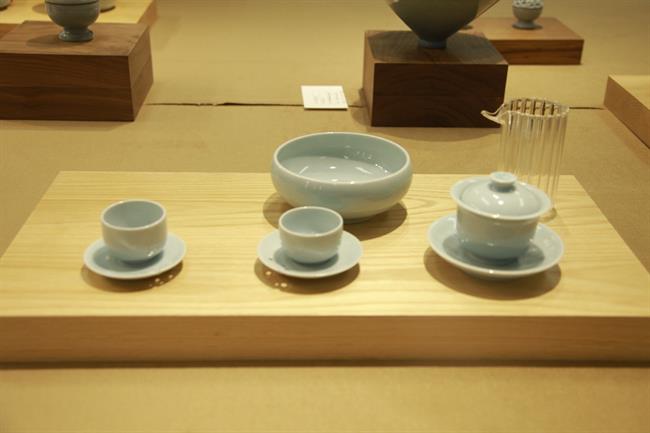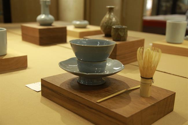 陶艺组寄情于陶瓷作品。此次,他们带着对宋人如何饮茶的好奇,心怀对陶艺的喜爱,将柔情沁入青瓷。构思精巧的爱莲,镂空精美的紫烟,酱红釉与青瓷的精妙结合……让千峰翠色的青瓷多了一份浪漫。