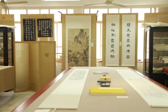 装裱组的书画装裱是我国独特的传统工艺呈现。它的产生与发展,不仅在于美化书画,保护书画,更能延长书画的寿命。装裱是对书画的深加工,在书画欣赏与保存的过程中,装裱技术历经革新,如今的装裱技术更加多样化,“三分画七分裱”在我们的书画作品上体现得尤为明显。
