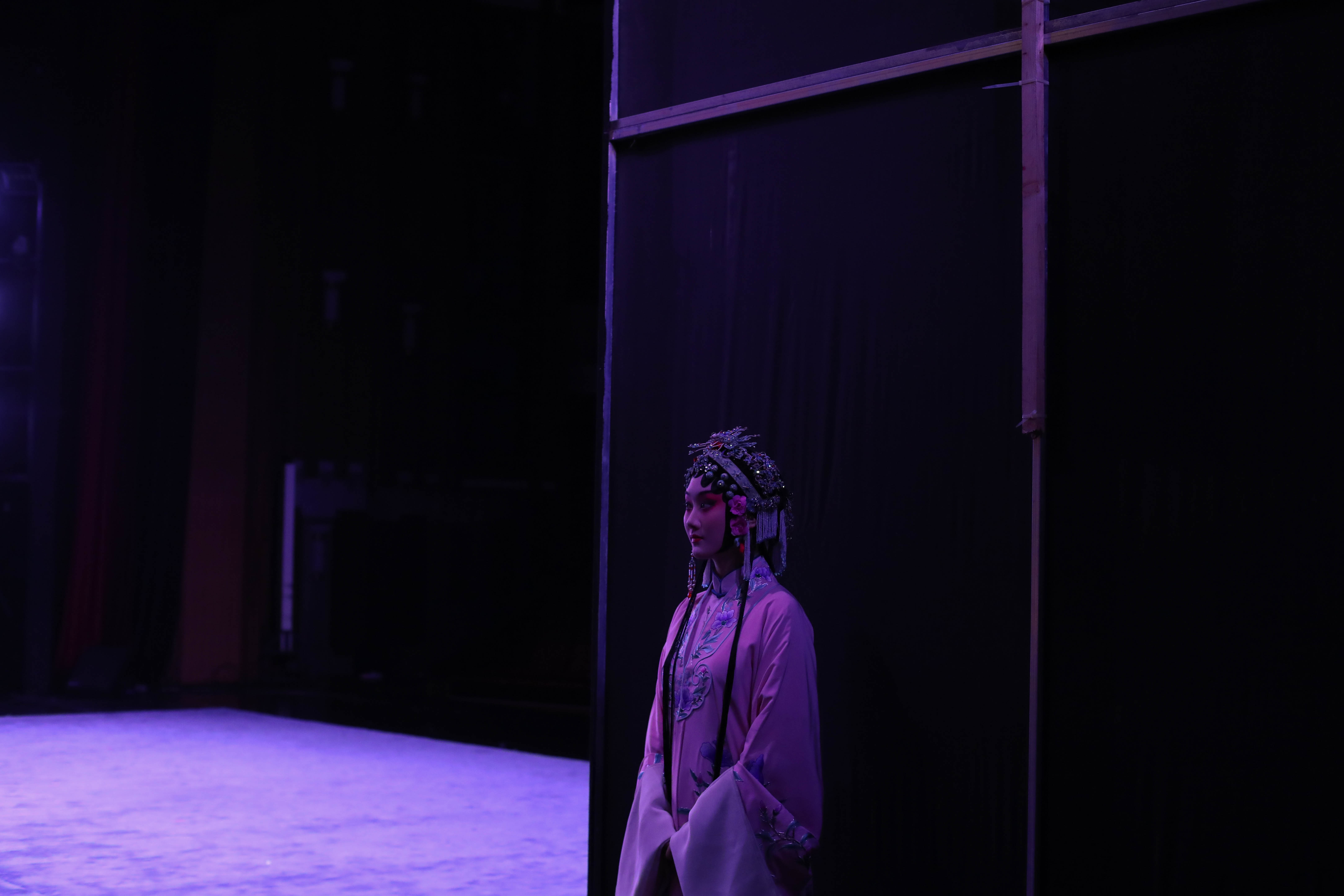 下午至晚上则是细致地走台。在舞台表演中,舞台不是演员一个人的方阵,它还是灯光师的秀场,调音师也在其中不动声色地付出。舞台上光彩夺目地视觉呈现,演员起承转合的唱腔,都离不开一遍又一遍地演练,灯光师的打光跟光以及用光调度,演员的舞台走位以及佩戴麦的种类都需要灵活处理,一遍遍走过,各部门不断协调尝试,才能呈现舞台最佳视听效果,观众才能最大限度地享用那一场视听盛宴。