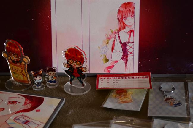 2019年12月27日至2020年1月3日,美术系动漫设计专业毕业展在四号楼前迎宾大道展出。今年的创意市集与毕业设计作品展融为一体,墙上张贴着毕业设计作品的制作过程、制作思路,还有一张张绘制精美的插画,桌上摆放着制作精美的动漫衍生品,迎来了不少师生的喜欢,恍若一场小型的漫展现场。