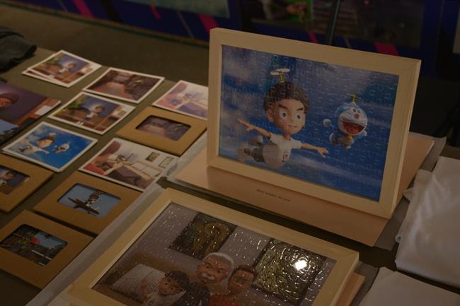 定格动画作品有《布鲁族人》《游园惊梦》等,其中《布鲁族人》是科幻作品,讲述核战争爆发后的未来世界,大规模使用核弹从而导致全球气温骤降,产生一种称为“核冬天”的气候环境,生物大量灭亡。有幸活下来的人类艾米与布鲁族精灵蓝胖子为了生活,从而开始了求生之旅。可爱生动的蓝胖子也在展览中现身,收获了不少小伙伴的喜欢。
