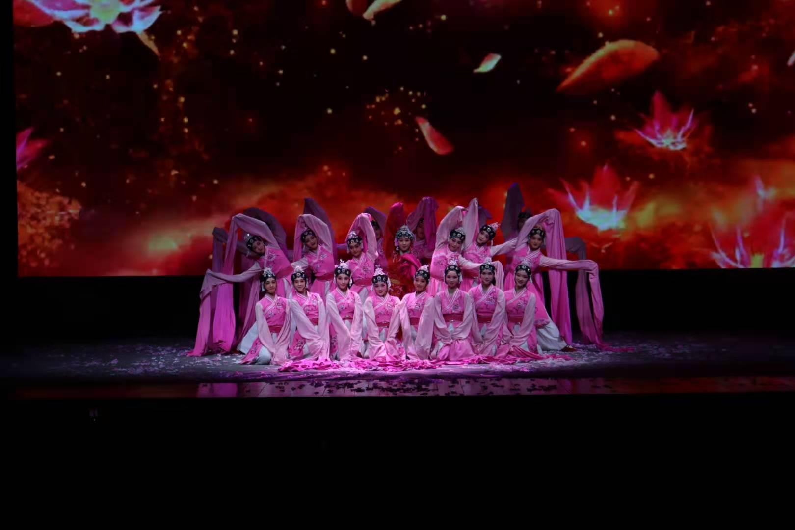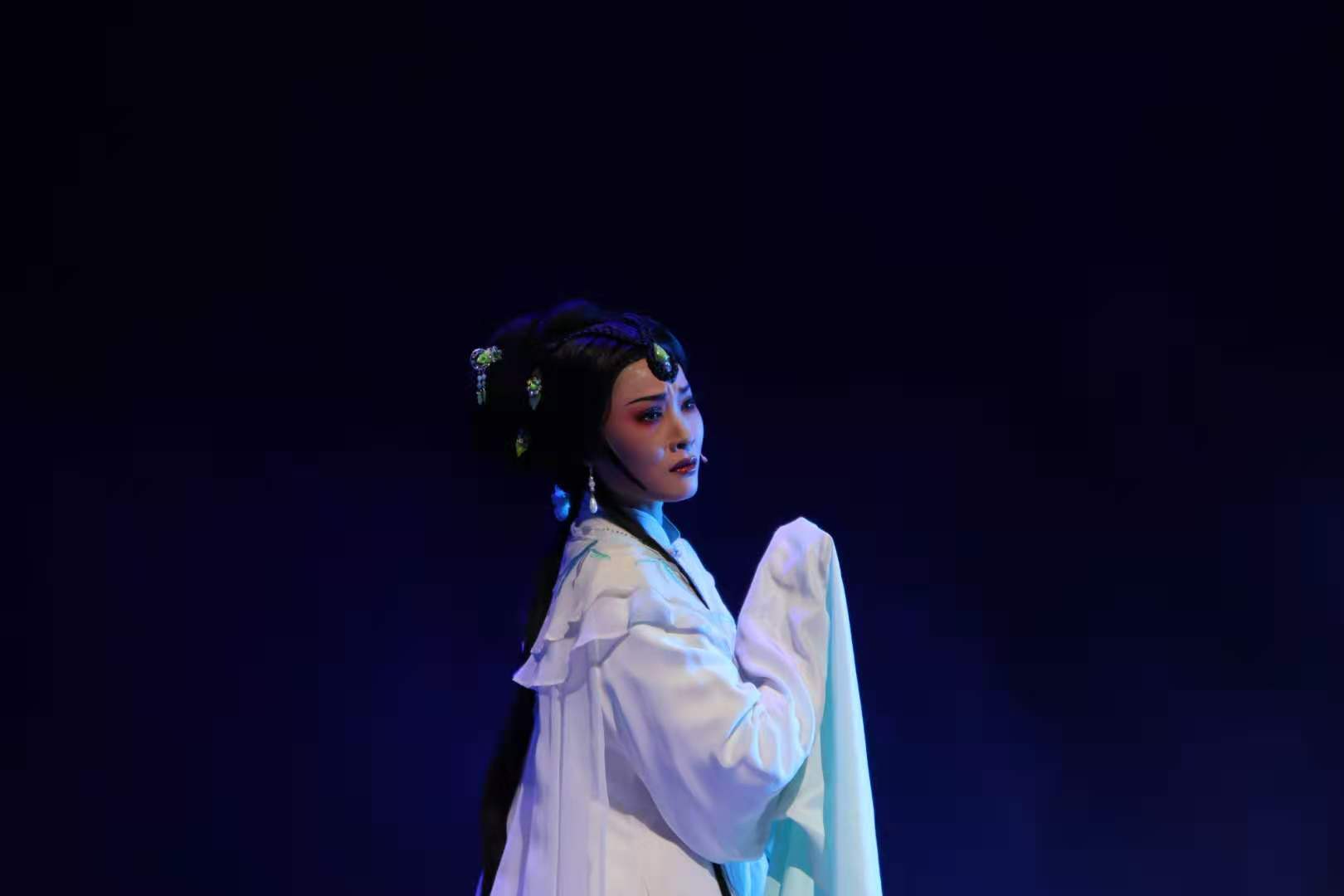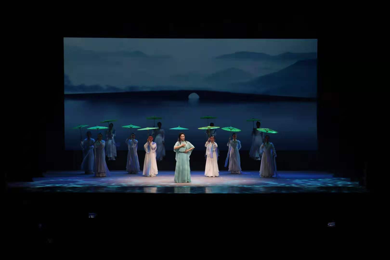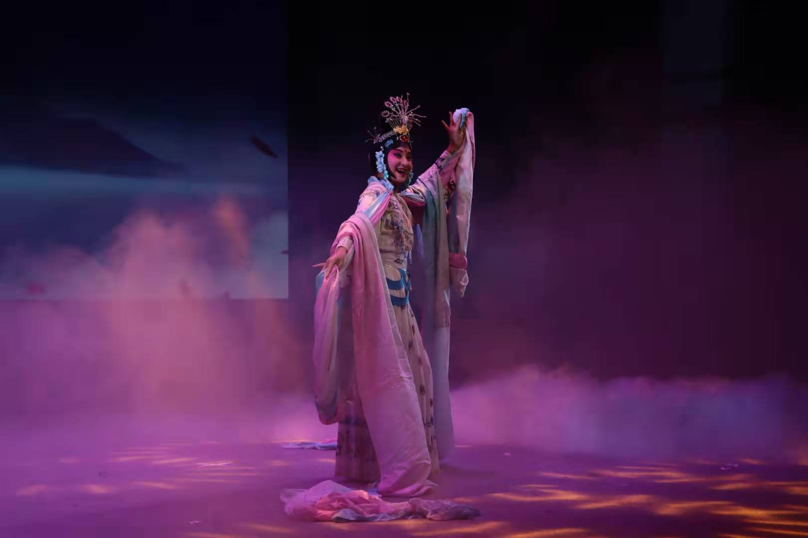 当晚演出的剧目也是经过精挑细选的经典剧目。俞会珍老师的《碧玉簪·送凤冠》、吕静老师的《白蛇传·西湖山水》、浙艺毕业生郭茜芸等表演的《山河恋·送信》,师生将越剧特有的灵动戏曲魅力展现得淋漓尽致。张志红老师表演的昆剧经典唱段《牡丹亭·惊梦》典雅唯美,令人印象深刻。柴轶佳老师带来的京剧《卖水》,不仅展示了高超水平,还展现了“以一当十”的独特气势。在《梁祝·英台悼墓》中,张聿老师的唱腔结合舞者毛瀚哲的舞蹈,让观众们看到了祝英台在面对爱人去世后的悲伤和和无助。郑佳艳老师带领17越剧温州南通班、18越剧南京班表演了京剧《天女散花》,柔中伴美,真如仙女下凡般令人痴迷。演出在戏曲舞蹈《袖舞翩迁》中落下帷幕,在绝美的舞蹈表演中,老师和同学的辛勤付出得到了完美的呈现,也赢得了经久不息的掌声。