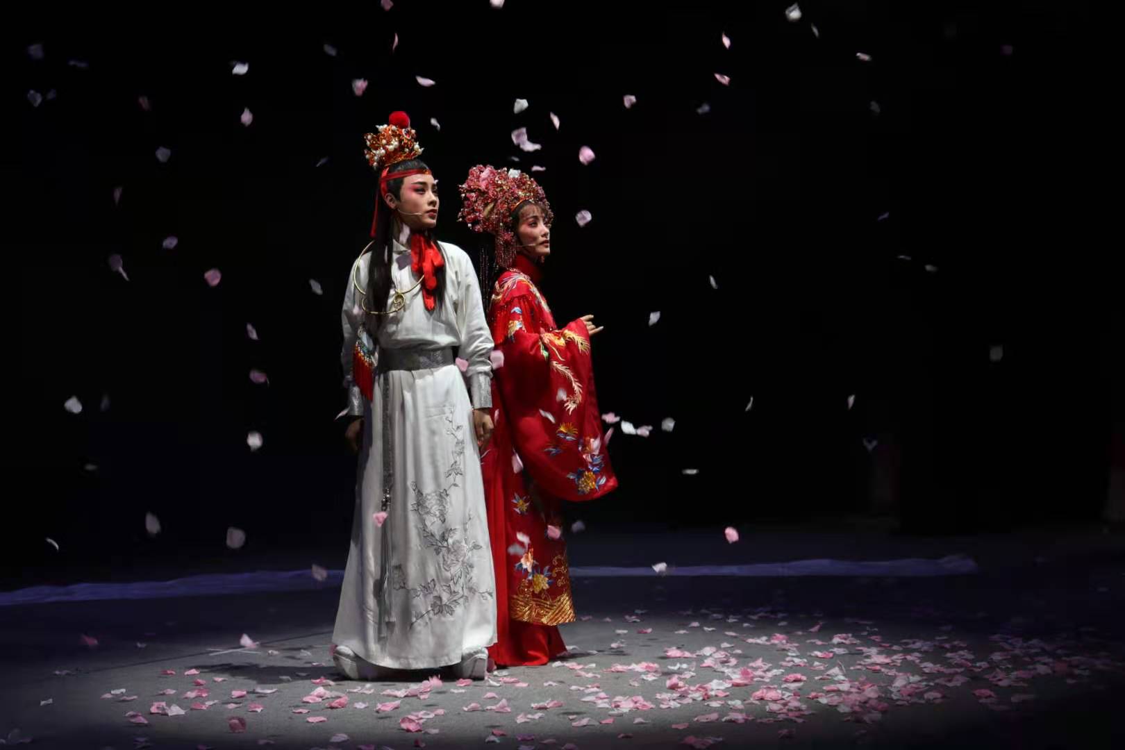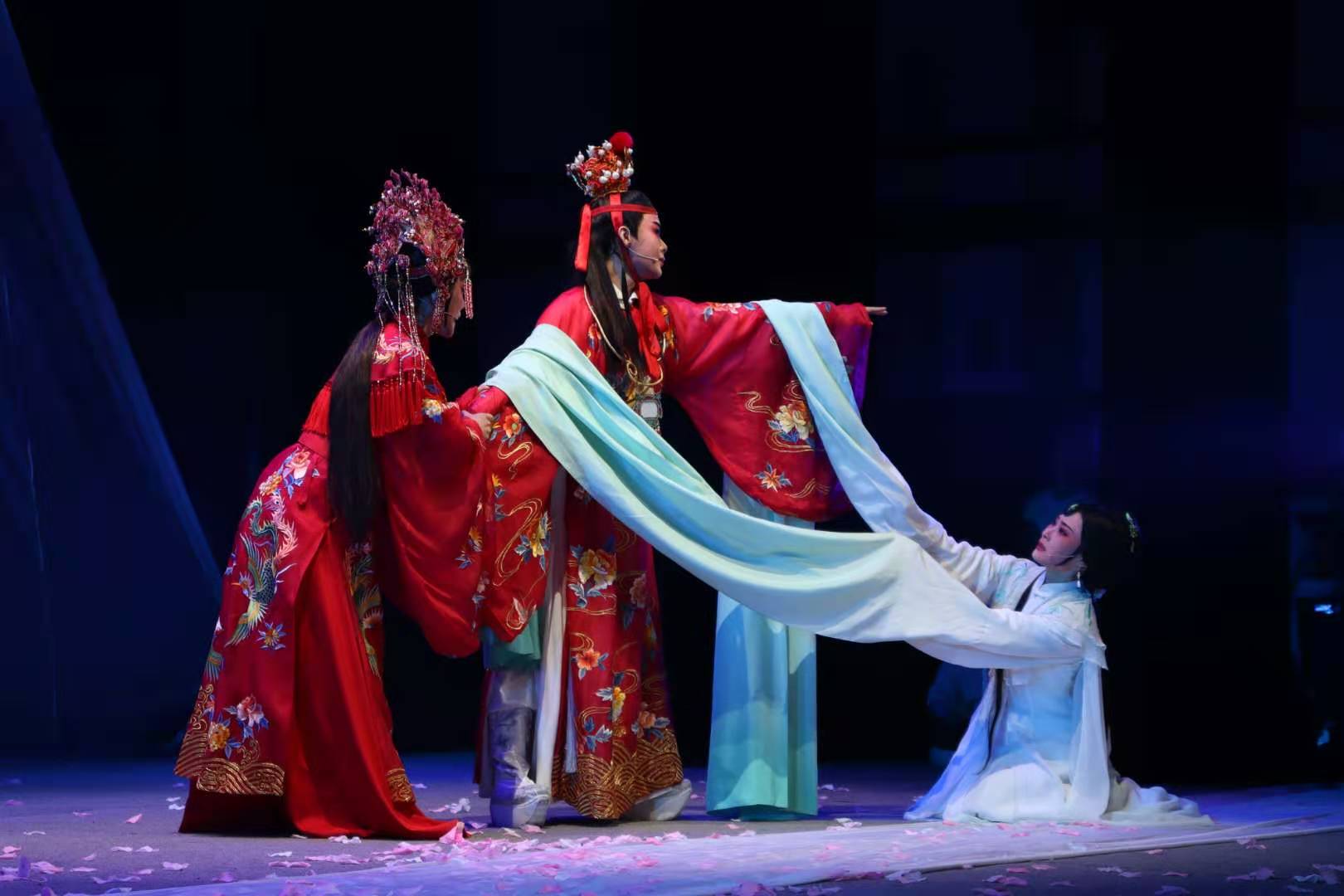 参演2019国家艺术基金项目、我校原创作品《葬花吟》的陈丽君、李云霄和郑晓,是越剧舞台青春靓丽的新生代组合,也是浙江小百花越剧团的优秀青年演员,陈丽君的贾宝玉在满心欢喜和失落之间切换自如,让观众们无不叹服;李云霄的薛宝钗和郑晓的林黛玉表演细腻、情真意切,给观众带来了强烈的震撼。
