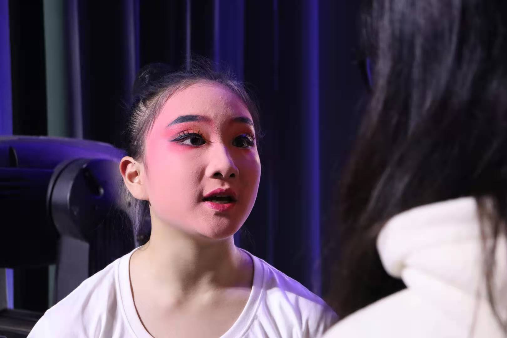 “传·承”师生同台戏曲专场演出的节目薪火相传,再现了戏曲学院老师如何教导学生并带领学生一步步成长的动人片段,并展示了学生在老师的带领下苦练已久的基本功。“台上十分钟,台下十年功”,在演出中也看到了老师和同学们对待艺术精益求精的态度。戏曲学院专业教师张耀文和19小百花班的学生郑雅文都是第一次参加这样的演出,他们表示心情十分激动,但也要发挥出自己的最好水平,为余杭观众展现出最美的戏曲艺术。17越剧一贯学生李冉说,和老师同台演出有很不一样的感觉,像在课堂上一样,十分亲切。