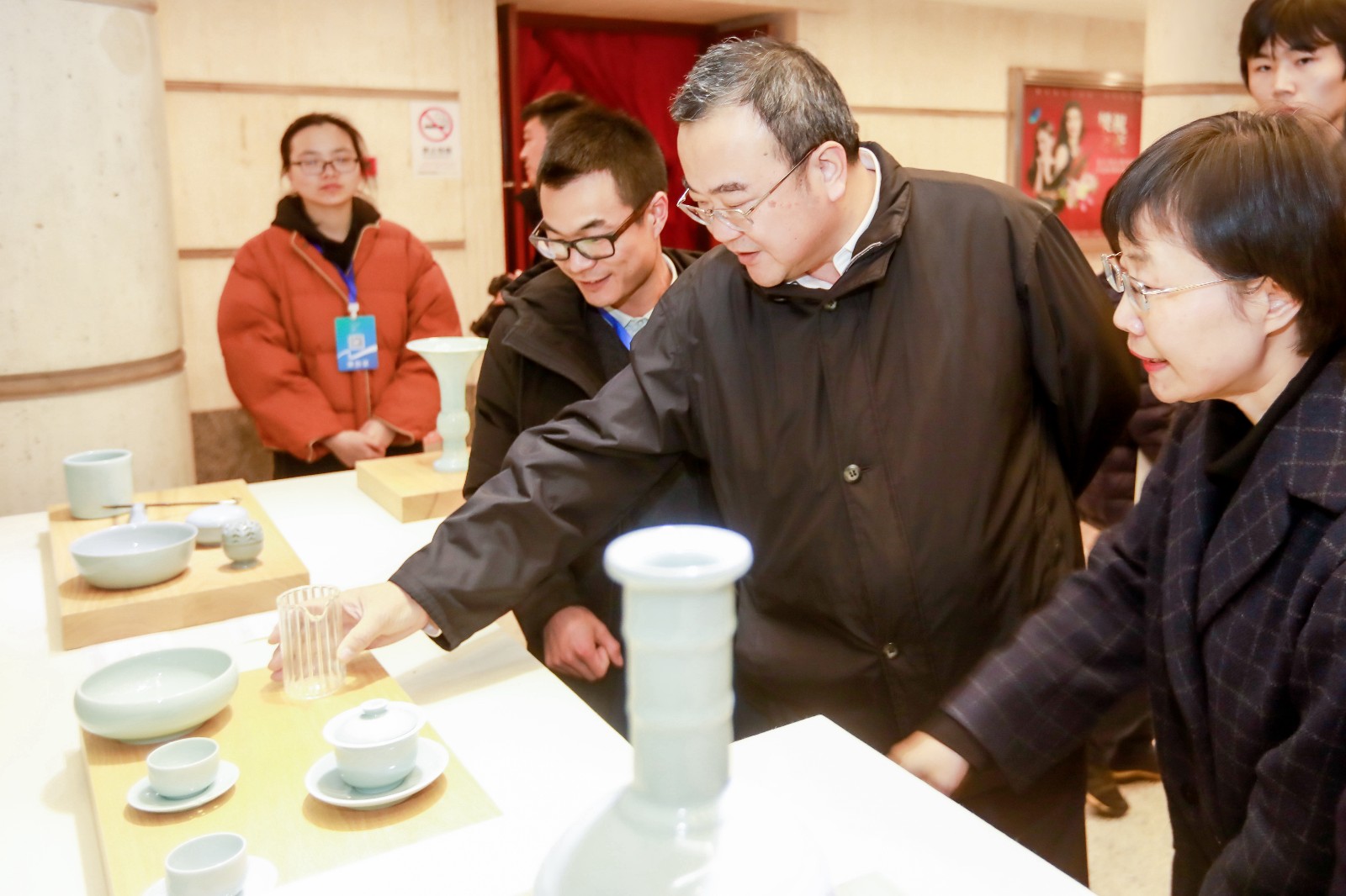 浙江省文化和旅游厅厅长褚子育演出前观看“浙艺手艺”