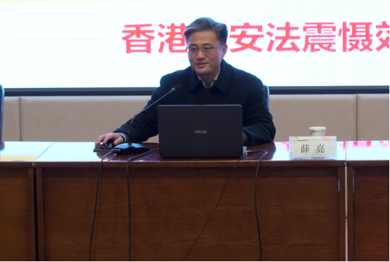 薛亮强调,要坚决筑牢“一国两制”根基。他从确保“一国两制”行稳致远的治本之策、坚定香港“再出发”的决心和信心两个角度向师生讲解国家安全得不到维护,香港繁荣稳定就无从谈起。他指出,《中华人民共和国香港特别行政区维护国家安全法》的制定实施,是中国政治智慧的又一鲜活范例,“一国两制”在香港的实践进入了新里程。