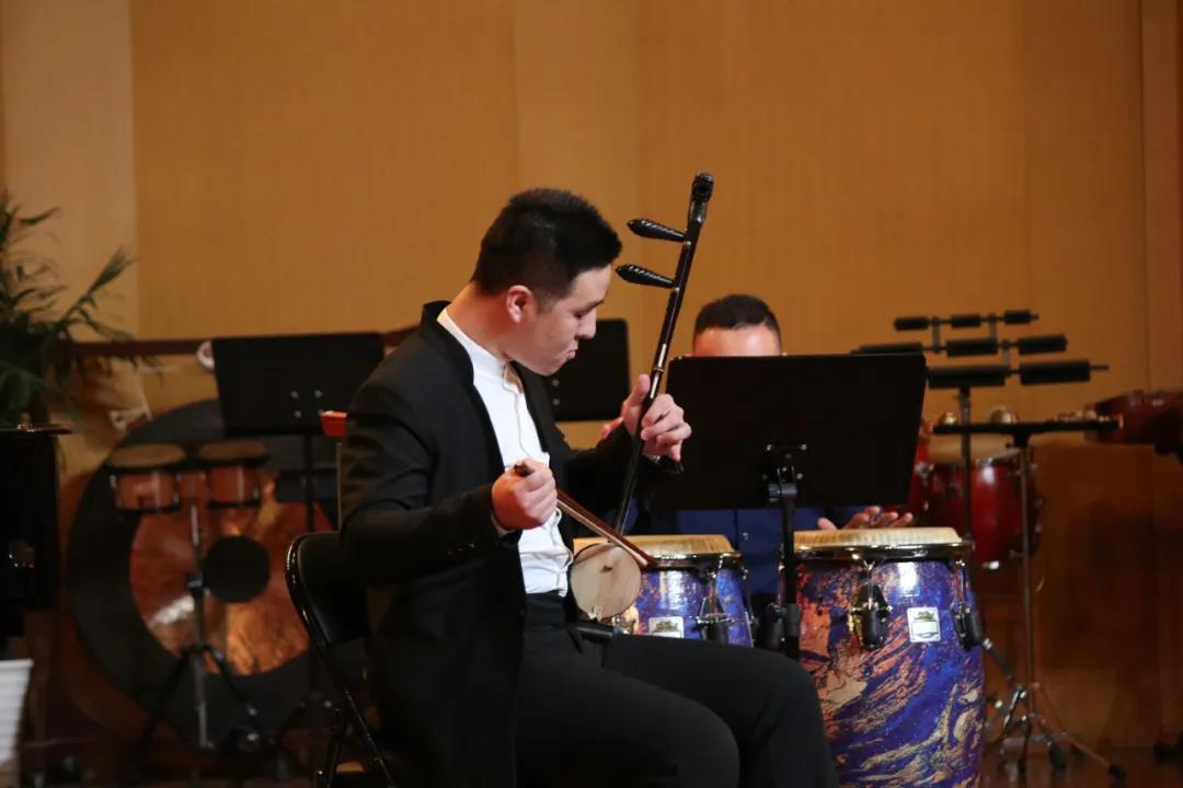 压轴大曲是由刚刚结束2020高校巡演的音乐系民族室内乐团青年教师们带来的民族室内乐《茶马》。该作品巧妙地运用了西南地区的音乐元素,表现了始于唐代的滇藏地区茶马古道之沿路风情,音乐节奏丰富、旋律优美、热情欢快,弹指交错间,各乐器配合默契,赢得了满堂喝彩。