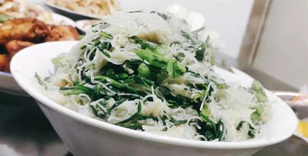 我是文化管理系18文创2班的应意吉,来自台州温岭,蒿菜面是我们家乡的一个小特色菜,虽然不是什么硬菜,但味道好吃。做法简单,把蒿菜和米面放在一起一起炒,和炒面差不多。