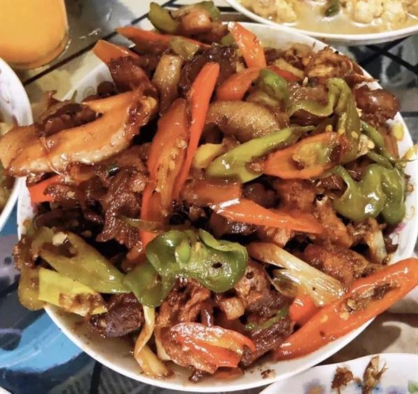 我是美术系19广告设计班的王旭,来自山东临沂,临沂炒鸡—沂蒙辣子鸡,这是一款地道的山东家常菜,做法和山东人一样质朴,实在的鸡肉、厚厚的酱油、干辣椒、鲜辣椒、红辣椒、绿辣椒……味道醇厚鲜美,香辣下饭。比之过油后干香麻辣的川味儿辣子鸡,又是一番不同的风味。电视剧《闯关东》中,朱家在东北开了家山东菜馆,有道菜叫“鲁味儿活凤凰”。电视剧中说的,就是山东炒鸡,全山东最好吃的炒鸡就在临沂,全国各地都有“临沂炒鸡”店。