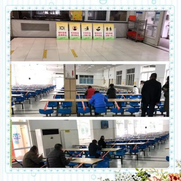 食堂值班人员每日测量体温、做好个人卫生和防护工作,保证工作人员卫生安全;严格把控食材采购关,做好每个批次的食材检查,保证食品安全;后厨操作区域、桌面、地板等,每日湿式擦拭消毒,保障食品环境安全;用餐区域做好分隔,一人一桌,排队档口设置一米等候线,座满限流,保障用餐安全;餐厅设置防疫标识语、洗手池配备洗手液、纸巾,张贴“七步洗手法”,保障防疫意识不松懈。