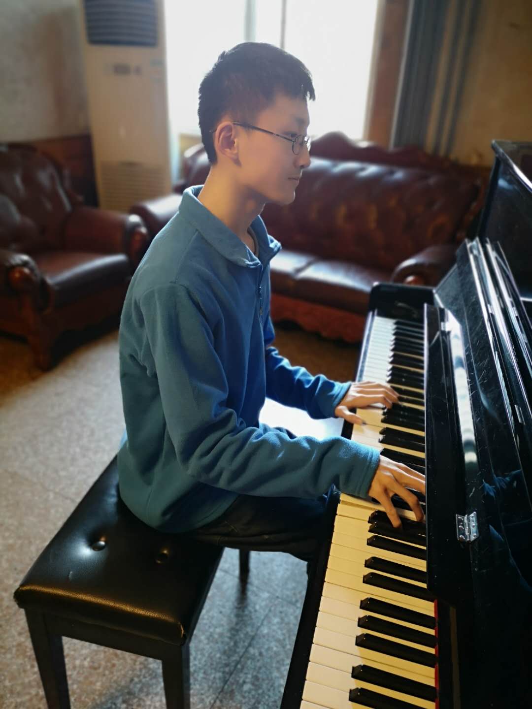 针对卢涵冰演奏方法欠佳的问题,我对他的教学是从音阶和琶音这种最基础的基本功训练开始的。每个钢琴老师最头疼的就是给学生改演奏方法,因为这种肌肉记忆是根深蒂固的,而且基本功训练枯燥且乏味,想要坚持下去并且有脱胎换骨的改变比教零基础的学生更困难。整个初中阶段,我给卢涵冰制定的学习目标就是练好基本功,夯实演奏基础。慢慢地我发现这个孩子身上有一种非常可贵的品质,那就是踏实和坚韧。他能够静得下心,耐得住寂寞,根据老师的要求一点一滴高标准地完成自身的专业练习,非常刻苦。在短短三年中,卢涵冰的基本功有了很大改善,演奏水平也在飞速提高。记得高一那年,卢涵冰已经能够高质量地演奏李斯特的《森林的呼啸》和《塔兰泰拉》这样高难度的音乐会曲目了,其中还凭借《森林的呼啸》获得了2018浙江省大学生钢琴比赛李斯特作品组金奖。综合考虑后我建议卢涵冰高考目标定位上海音乐学院作曲系(西洋作曲方向),我认为作曲比舞台演奏更适合腼腆的他,也更能让他发挥出自身的优势。所以高一开始,在卢涵冰的专业学习规划上,我做了相关调整,在积极拓展钢琴演奏曲目的同时,我推荐他跟随相关专家学作曲知识。卢涵冰就是附中学生的一个例子,只有勤学苦练才能华丽蜕变。