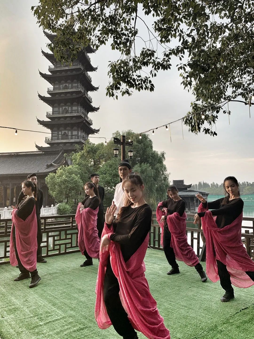 “演绎工坊”暑期文化志愿服务团队的师生们带来了原创肢体情景表演《穿越·梦境》《聊·斋》《梦》,作品中融入戏剧、音乐、舞蹈等多元化艺术元素,令人耳目一新。除情景表演外,“演绎工坊”还根据乌镇景区的要求和观众需求,由戏剧系教师陈丽根据学生们的特长组织创排歌舞表演以及“恐龙”玩偶表演,增强演出效果,观演互动趣味十足,现场观众掌声不断,气氛十分热烈。