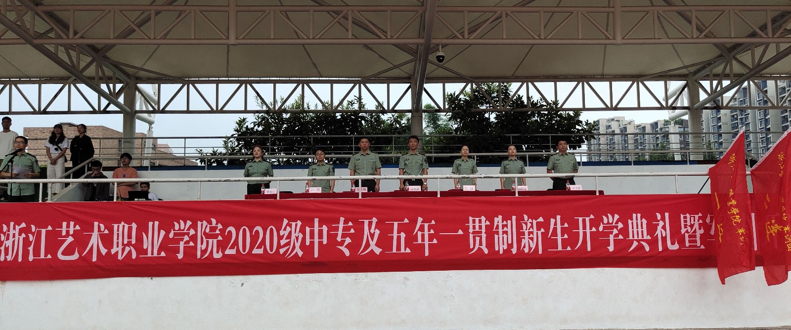 9月26日,浙艺2020级中专及五年一贯制新生开学典礼暨军训开训仪式在学校操场举行。校党委委员、副院长沈军甫出席,学工部负责人、各系书记、辅导员和班主任等参加。