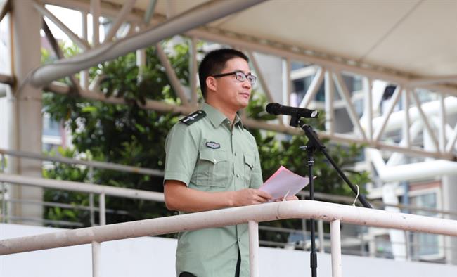 教官杨阳来自19公共文化班,他在去年中专军训中担任教官助教,今年被学校招录为军训教官。“今年肩上的担子更重了,对学生训练要更严格,更加严谨仔细,希望同学们在军训期间都能走得整齐一点,遵守纪律,吃苦耐劳,学习军人的生活方式,从中吸收对自己有帮助的部分。”