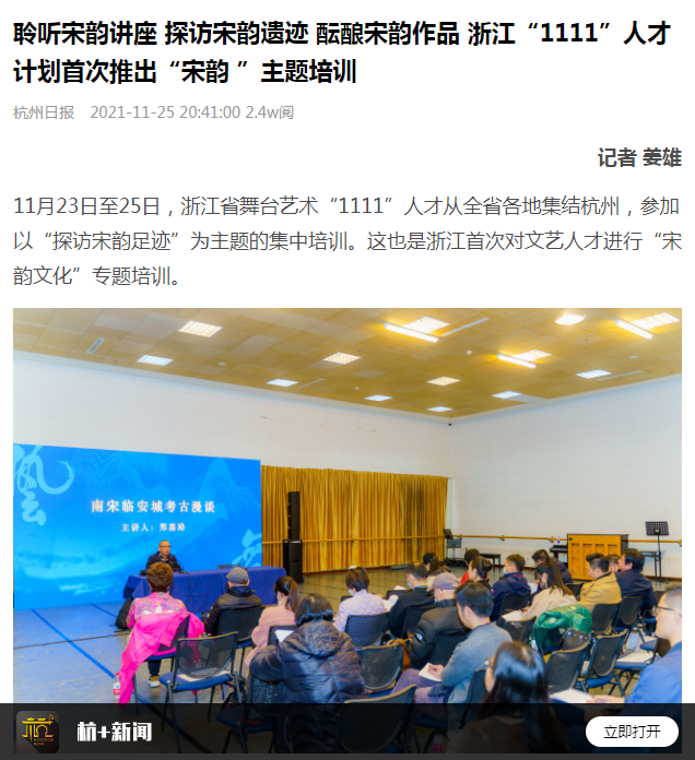 杭州日报:聆听宋韵讲座 探访宋韵遗迹 酝酿宋韵作品 浙江“1111”人才计划首次推出“宋韵 ”主题培训