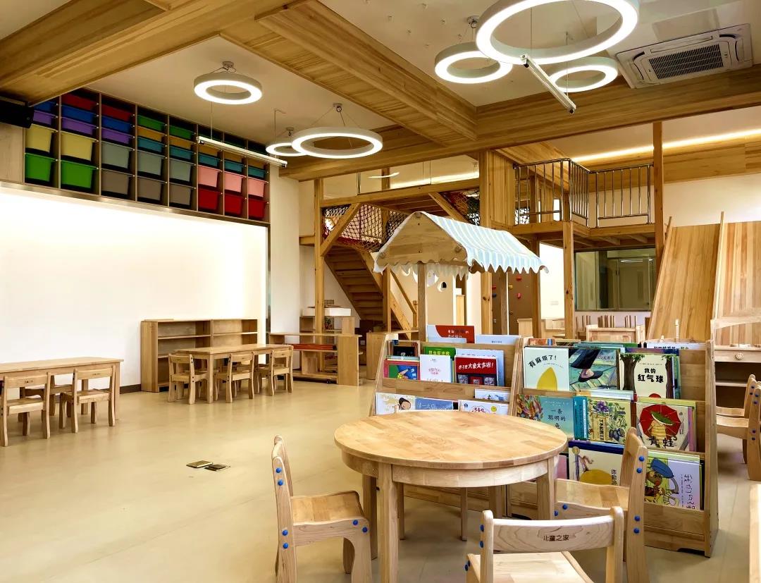 学校还专门建立了模拟幼儿园实训室和远程交互智慧实训室。实训室模拟幼儿园空间,设计了角色扮演区、盥洗室、美术区、益智区、绘本区、游戏区等区域,配有四百多册绘本及幼儿园玩教具,让学生在校学习期间就能感受到幼儿园的工作环境。远程交互智慧教室实训室,除了常规的理论教学,可以与合作幼儿园线上互动,实时观看幼儿园的工作流程,比如保育员怎么配餐,孩子吃完后如何收回餐具等,还可以线上提问,及时解决学习上的困惑。