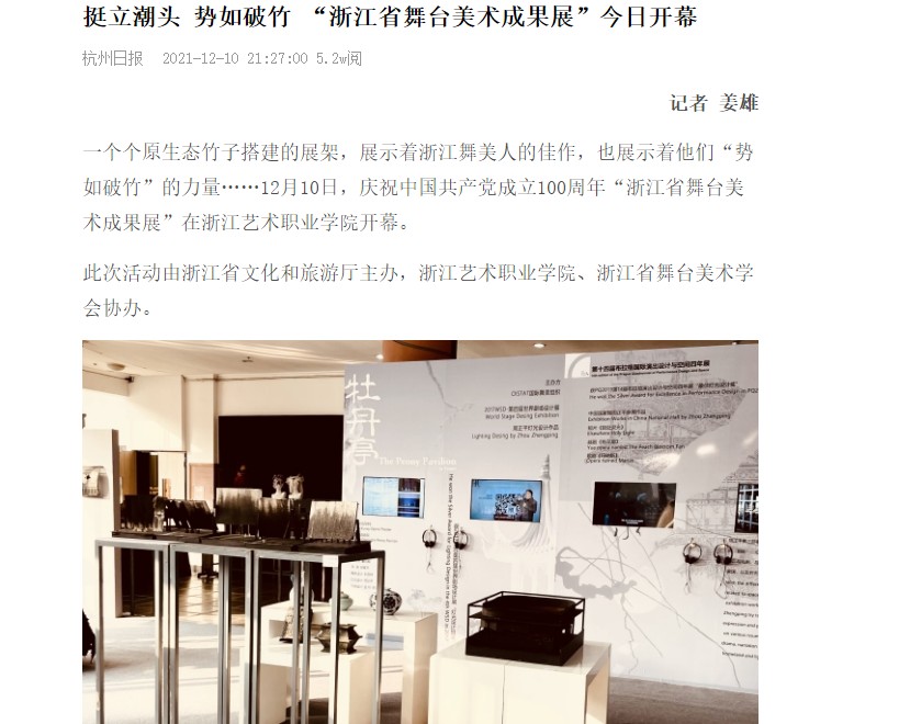 杭州日报:挺立潮头 势如破竹 “浙江省舞台美术成果展”今日开幕