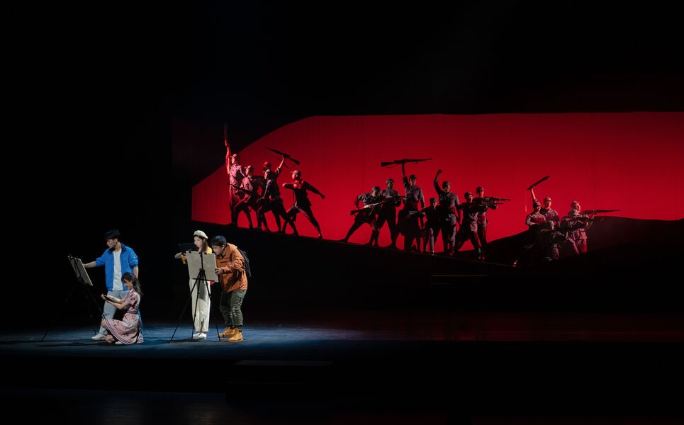 原创话剧《清溪谣》入选首届浙江文化艺术发展基金项目,主要讲述了一群美术专业的当代大学生在山间写生,无意中踏足一片静谧的竹林。雷雨中,他们与70多年前发生的战争相遇,他们与一群青春的新四军战士相遇,他们与一个个生与死的故事相遇——