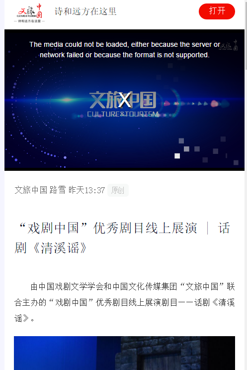 由中国戏剧文学学会和中国文化传媒集团“文旅中国”联合主办的“戏剧中国”优秀剧目线上展演剧目——话剧《清溪谣》。