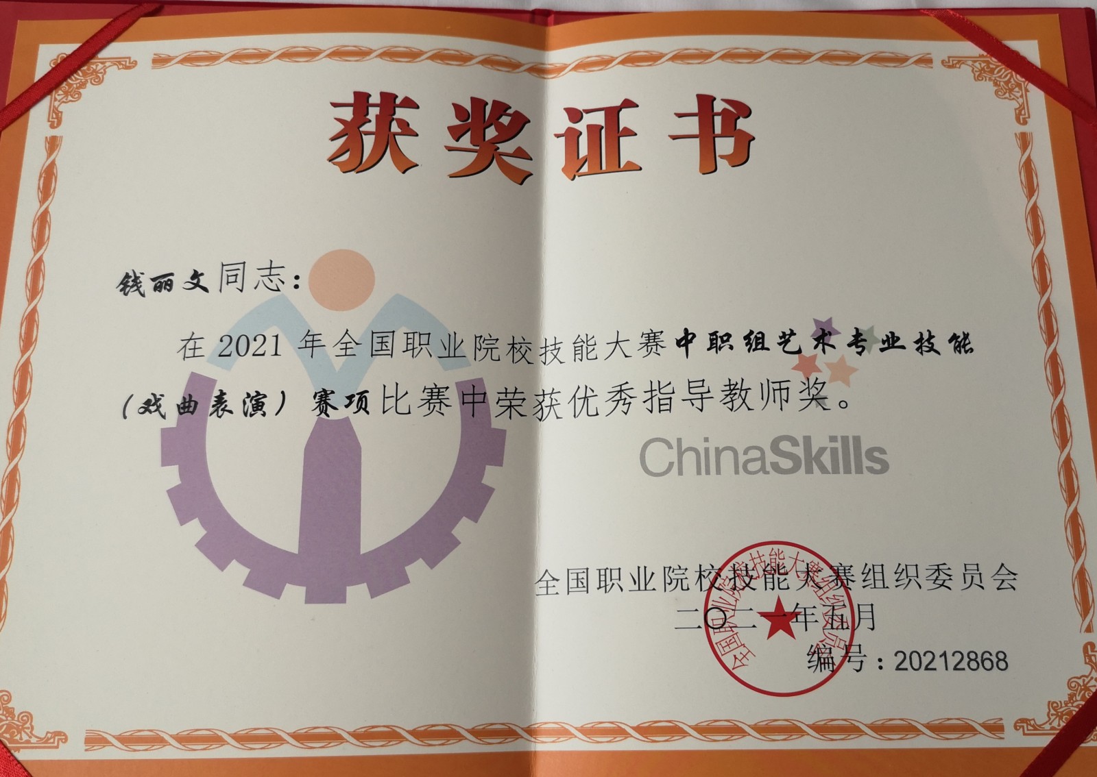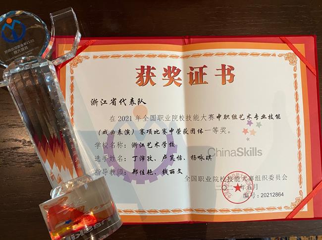 6月18日至22日,2021年全国职业院校技能大赛在山东烟台举行,来自全国专业院校的24支代表队72名选手参赛,激烈角逐各个奖项。在刚刚结束的颁奖仪式上,浙江省参赛队、浙艺戏曲专业学子杨咏琪、丁沛孜、卢笑恬三位同学表现出色,荣获全国一等奖,戏曲学院教师郑佳艳、钱丽文获优秀指导教师奖。