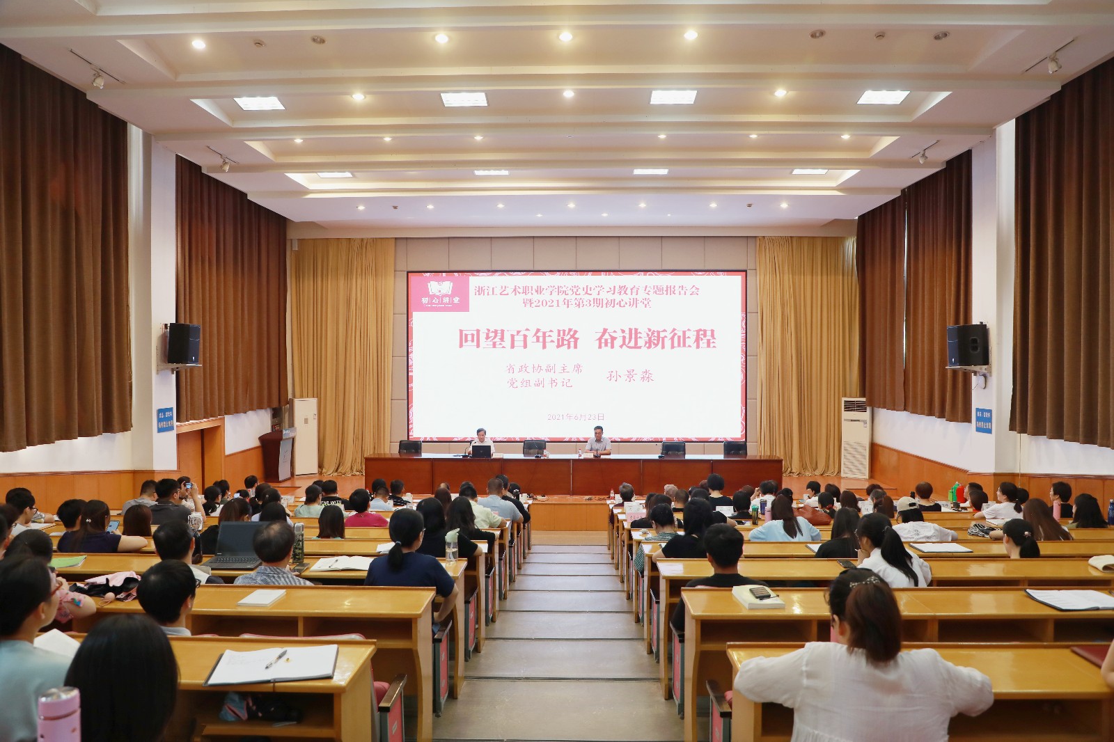 6月23日下午,我校党史学习教育专题报告会暨第3期“初心讲堂”在图书信息中心报告厅举行。省政协副主席、党组副书记孙景淼应邀为我校干部和党员作题为《回望百年路 奋进新征程》专题讲座。校党委书记薛亮主持讲堂,校党委班子成员、处科级干部和师生党员代表参加学习。