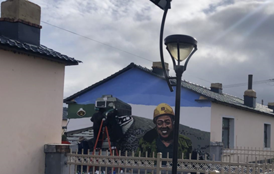 本次阿尔山乡村墙绘艺术大赛中,浙艺团队主要参与“脱贫攻坚与乡村振兴”部分内容。浙艺师生们每天早上6点就出发创作,晚上经常绘制到后半夜,无论风吹日晒雨淋,始终坚持,最终完成了西口村安居思源小区4面大墙和10面小墙的绘制,总面积将近160平米。其中4面大墙上,主要绘制了西口村的四类主要人群——农牧民、林场职工、边派民警、铁路职工,用写实的手法描述了他们在这片土地的奋斗经历和幸福生活,既体现了西口村农牧林三区节点的独特区位,也展现了西口村脱贫攻坚与乡村振兴新面貌。10面小墙上,主要绘制了阿尔山当地的特色动植物,用比较轻松、卡通的绘画方式,表现了阿尔山的风土人情。
