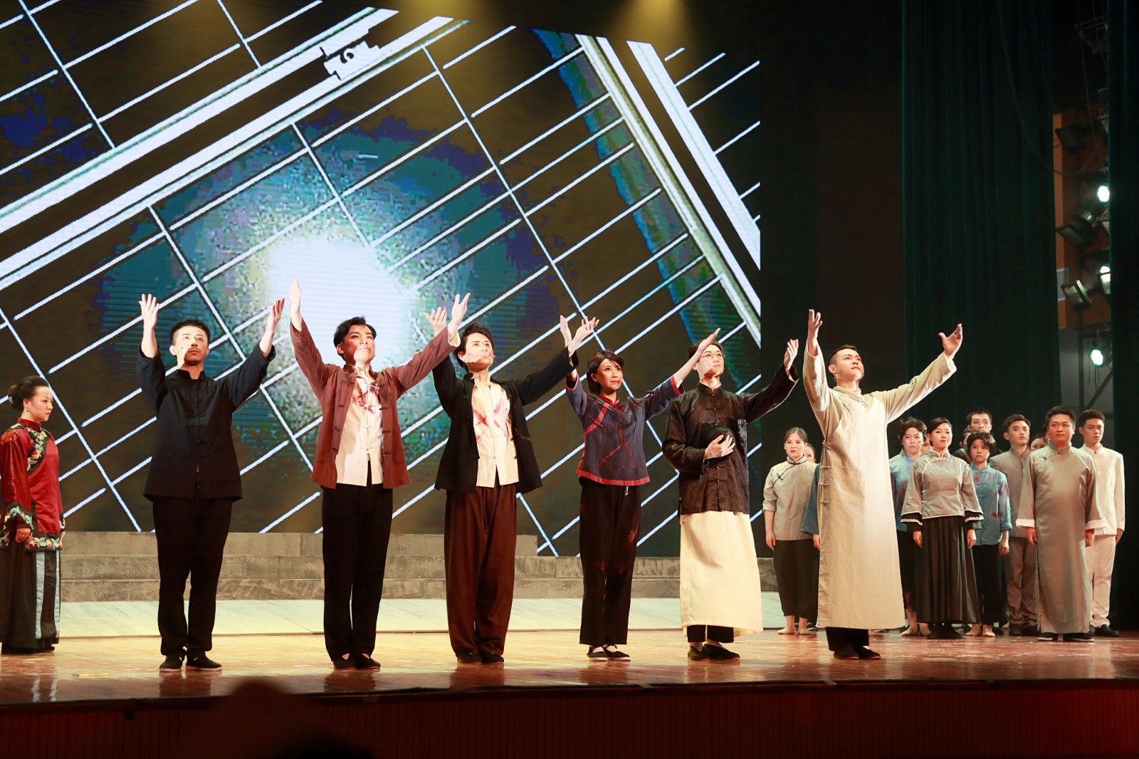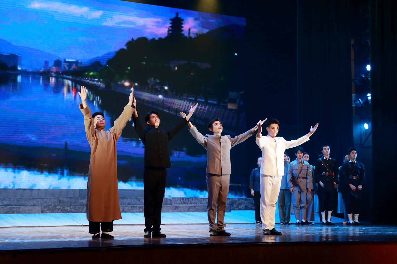 这部舞台剧目由我校浙江青年实验艺术团统筹,组建了由戏剧系副主任(主持工作)那刚作为总导演的创作团队,集合我校教学实践部舞美、灯光、造型、音响、视频各个岗位的青年教师作为舞美技术班底,融入文成县文化馆的文艺骨干、汇集我校戏剧系优秀毕业生,音乐系、文管系在校生作为主要角色组成表演团队。该剧目是我校师生和温州文成县艺术工作者双方密切合作,深度融合的一次有益尝试,从创作编排到舞台呈现历时三个多月,反复讨论几度易稿、舞台构思推倒重建,参演师生和文成演员克服异地困难,最终圆满完成演出。