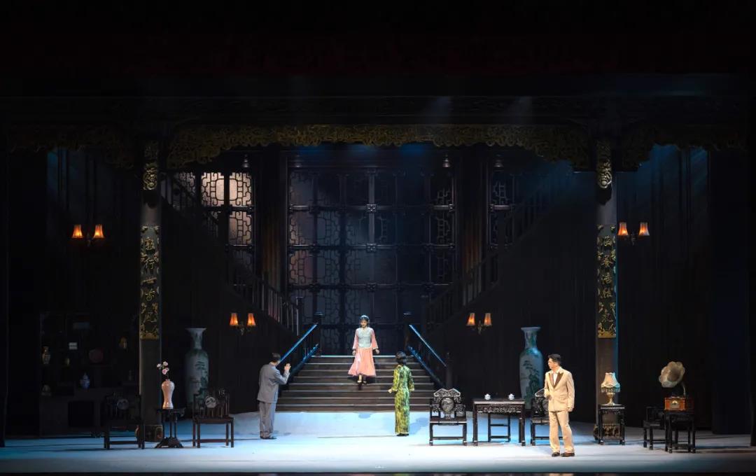 情境的营造。灯光营造舞台的“情”和“境”,光谱分子弥漫在整个演出区域,将布景、造具等独立的舞台元素融为一个有机的戏剧空间;光的色彩、明暗,随音乐、情节而变化,时而轻盈、时而通透、时而激荡,营造出一个情景交融的意象世界,传达戏剧情感。