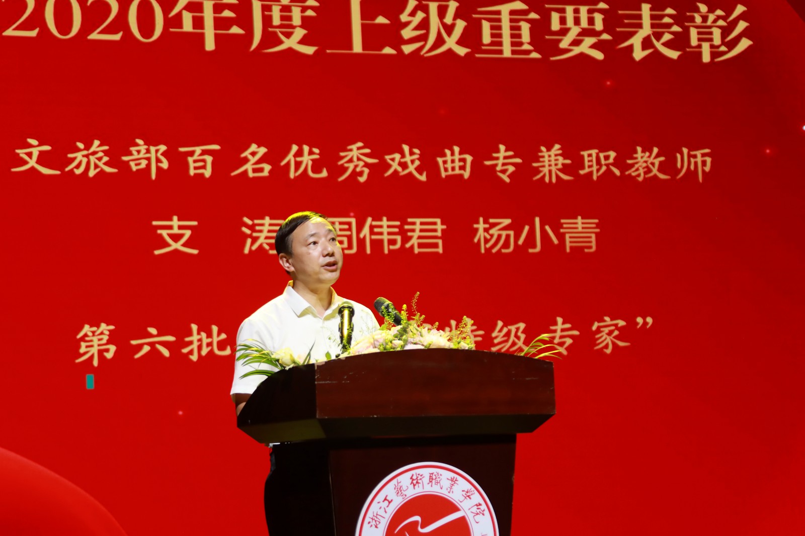 第二,文化工作正开启新的征程。8月31日,省委高规格召开文化工作会议,省委书记袁家军作重要讲话。这给全省宣传思想文化单位提出了进一步做好新时代文化工作的新使命新要求。全校教师必须响应省委号召,努力在打造文艺精品力作和壮大高水平文化人才队伍等方面承担起新的使命任务,朝着建设创新型艺术高职学校的目标不断探索。