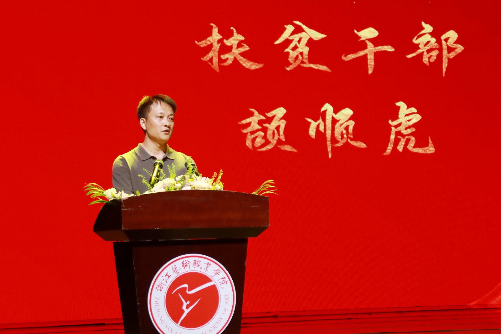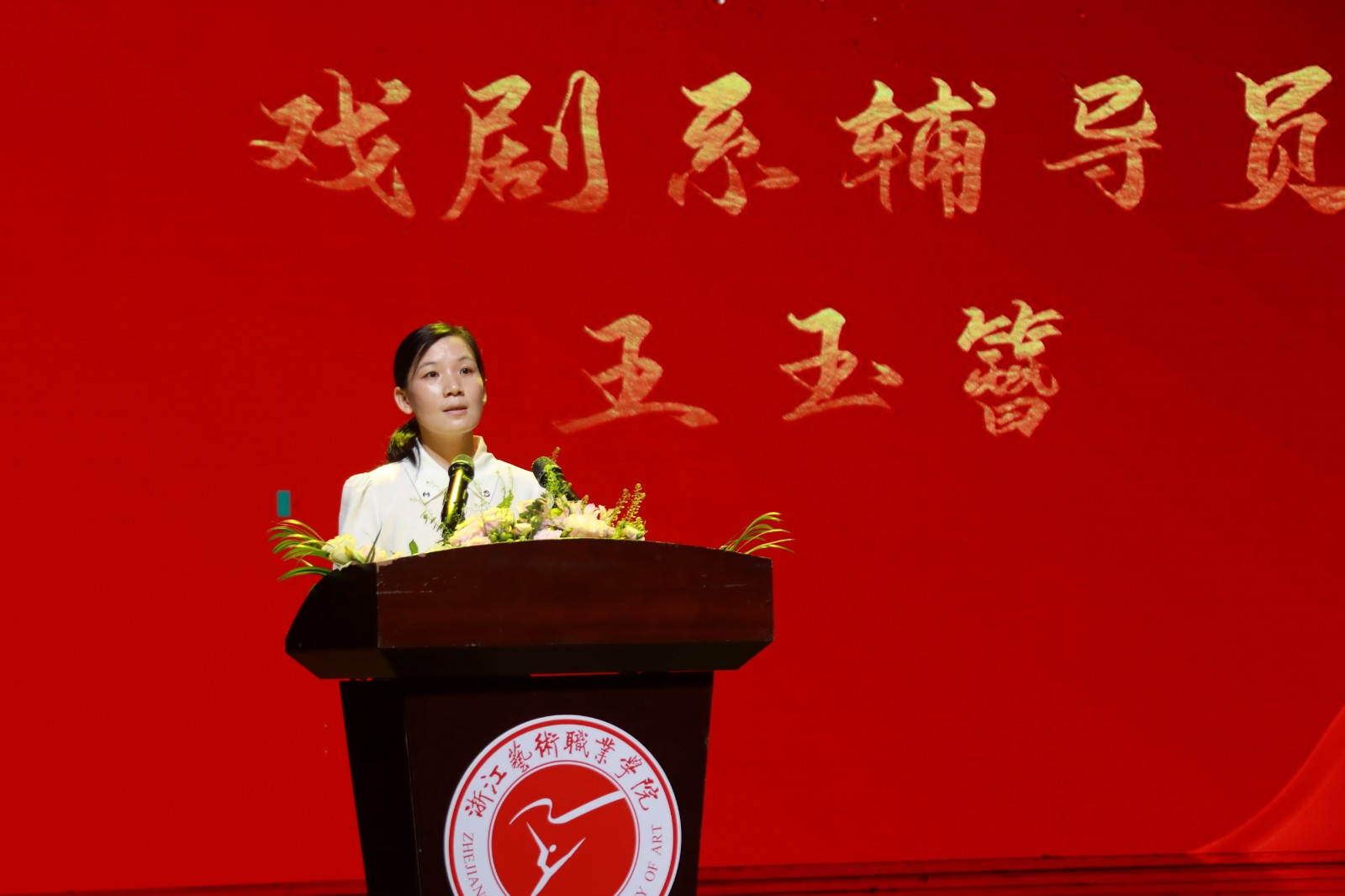 4位活跃在学校教育教学、党建思政、管理服务等一线的优秀教师和教育工作者代表夏金瓯、钱慧文、王玉簪、颉顺虎分享了教育教学工作经验;文化管理系2019级公共文化定向2班吴京涛作为学生代表,向老师们送上了节日祝福。