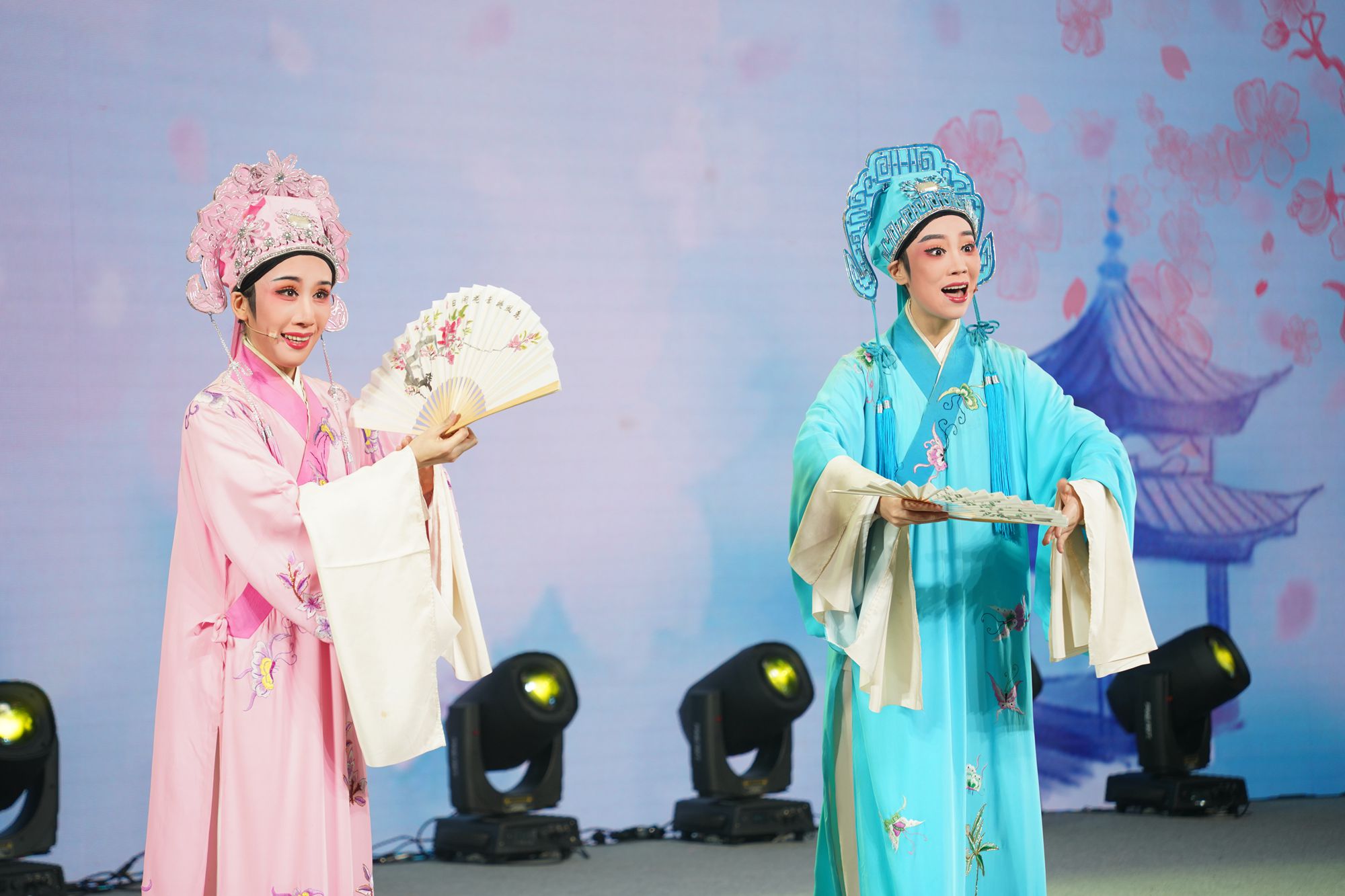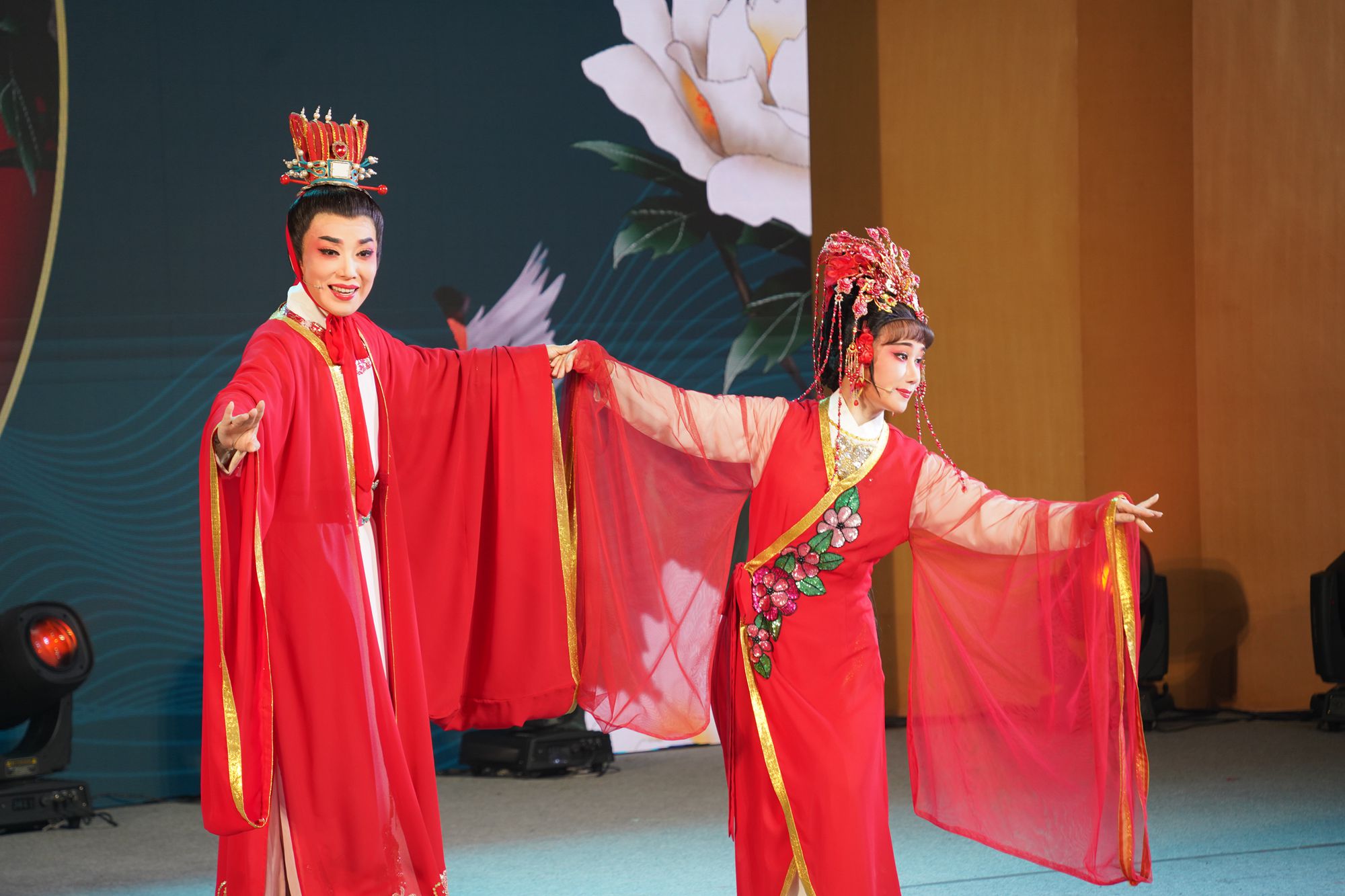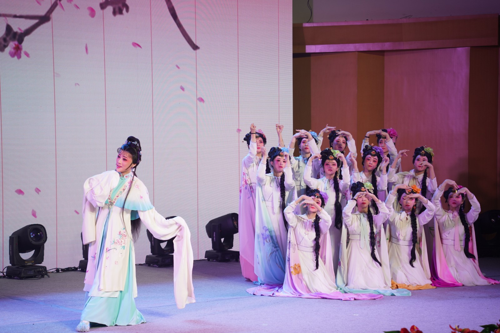 “梅花奖”获得者谢群英和杭越的浙艺校友们,现场展示了《梁祝》《红楼梦》《盘夫索夫》《盘妻索妻》《孔雀东南飞》等越剧经典剧目片段。