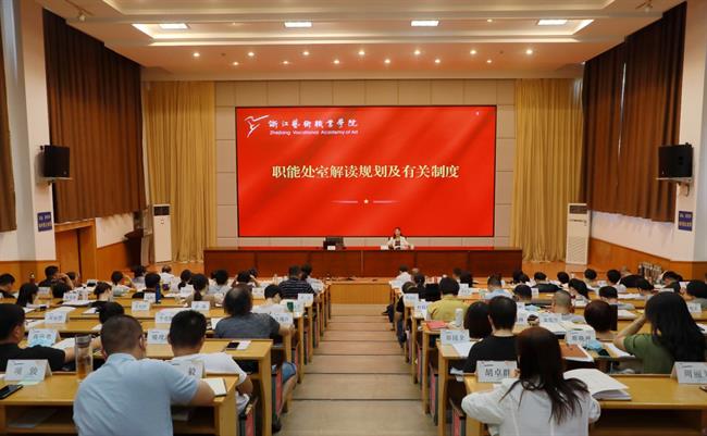 黄杭娟在动员中指出,本次读书会的主题是:深入学习贯彻习近平总书记“七一”重要讲话、党的十九届五中全会和省委十四届九次全会精神,实现学校新阶段高质量发展,助力高质量发展共同富裕示范区建设。在这个暑假,有关系部加班加点,多项工作取得了新进展,学校教学综合楼项目顺利完成总包招标,本部校园校舍改造和立业园、立志园新增场地改造设计项目进展总体顺利,启动了白马湖校区筹建工作;新装修后剧场的使用率明显提升,学校艺术团开启了社会业务拓展,与浙勤集团合作成立的浙艺学教育科技有限公司与浙江黄龙体育文化培训有限公司举行战略合作签约仪式;学校乡村文旅发展研究中心实践案例《唤醒乡村振兴原力,打造乡村文旅队伍的“浙江样本”》成功入选2021年科研建设优秀成果,3个项目入选文化和旅游部文化艺术职业教育提质培优行动计划;2021年高职招生录取工作圆满结束,高职招生计划1314人,实际录取1314人,计划完成率100%(包括省外),创历史新高;组织开展以“回望百年话初心 浙艺学子忆峥嵘”为主题的暑期社会实践工作活动,共14支团队400余名师生赴全省各地开展实践工作。