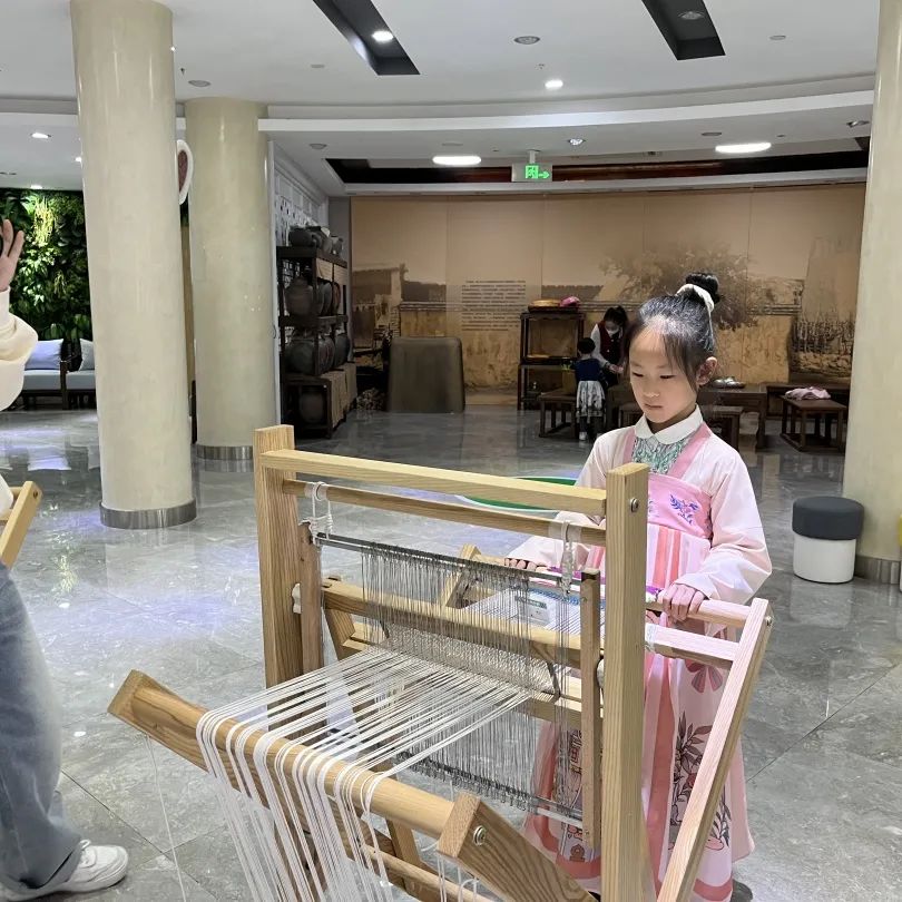 随后,孩子们跟随着博物馆讲解员的脚步,欣赏了古代丝绸之路的相关物品:马面裙、太阳神纹像锦、单双人织布机等等,听到了许多感人神话传说,初步了解了丝绸之路的兴衰;参观服装馆过程中,孩子们被眼前靓丽精致的服饰吸引,纷纷凑到窗口前仔细观察,一步步地了解着古代服饰的变化历程。如此欢乐有趣的儿童馆,结束时孩子们在博物馆内久久不肯离去。